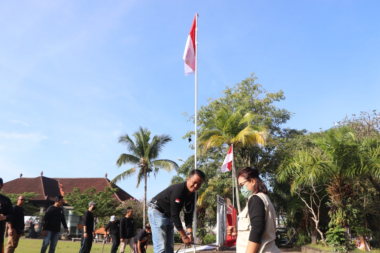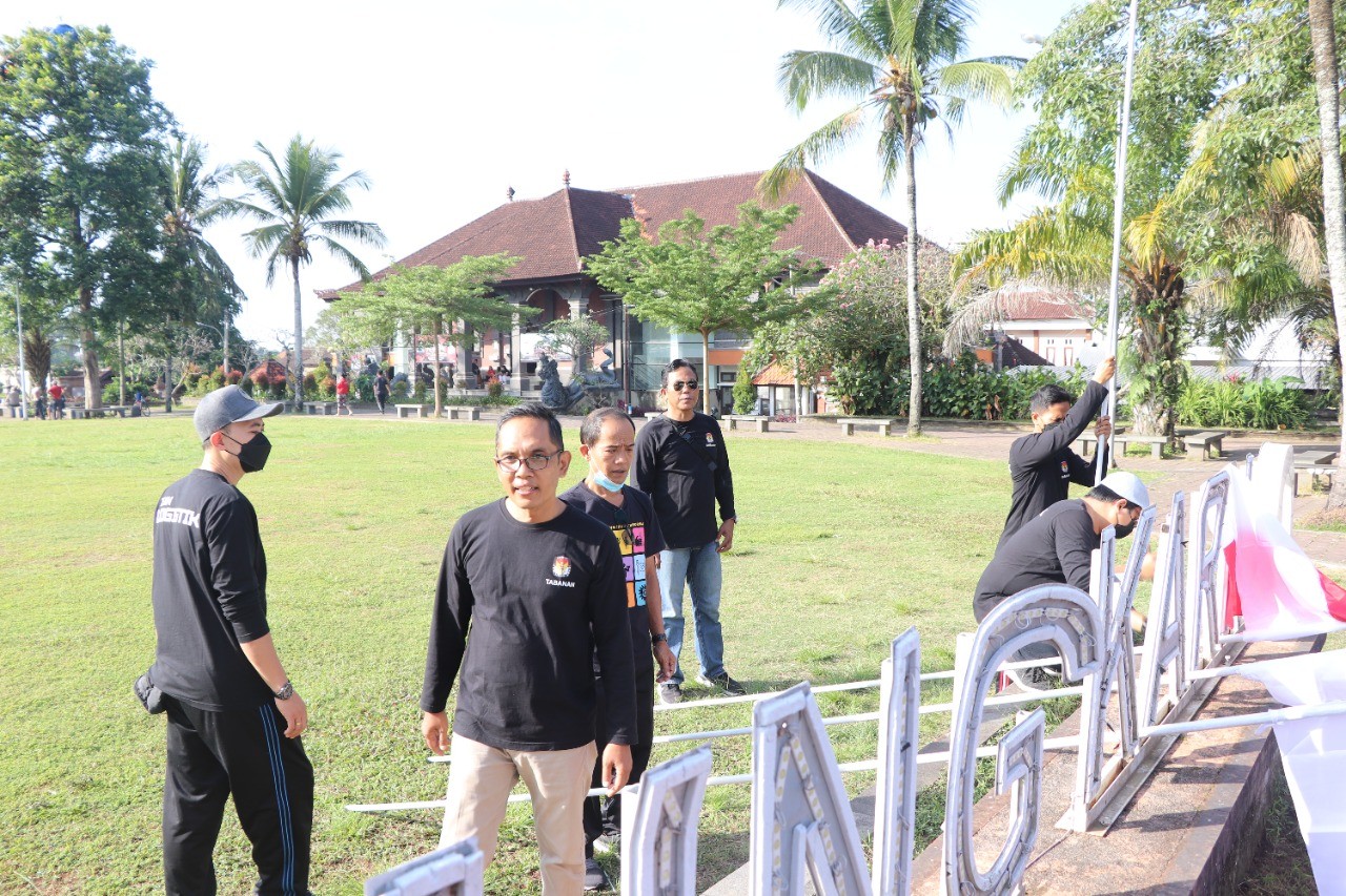 KPU Tabanan, Dangin Carik – Jajaran KPU Kabupaten mulai dari Ketua KPU Tabanan, I Gede Putu Weda Subawa serta Anggota KPU Tabanan melaksanakan pemasangan Bendera merah Putih, bertempat di seputaran Gedung I Ketut Maria sampai dengan GWS, sekitar pukul 08.00 Wita, Senin (01/08/2022).