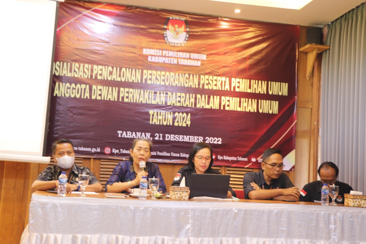 KPU Tabanan Sosialisasi Pencalonan DPD, “Penyerahan Dukungan Minimal Pemilih 16 – 29 Desember 2022”