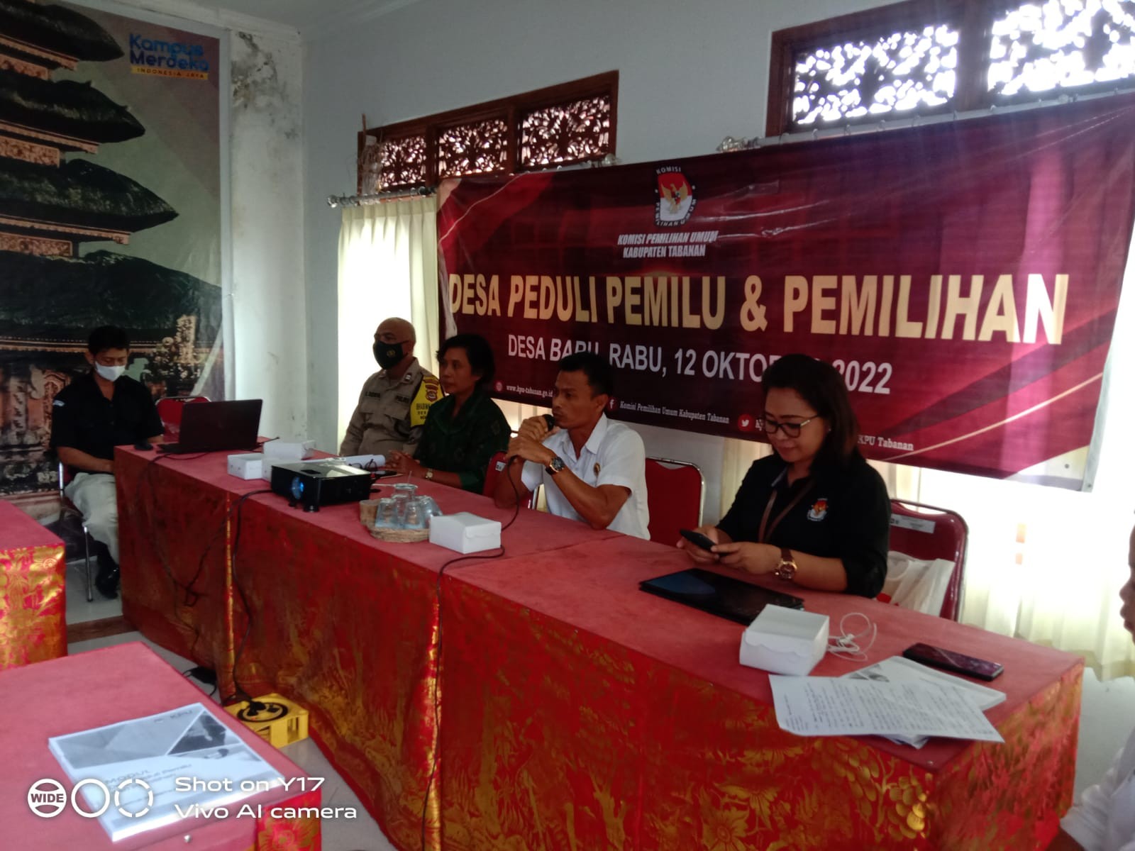 KPU Tabanan, Dangin Carik – Komisi Pemilihan Umum (KPU) Kabupaten Tabanan kembali mengadakan kegiatan sosialisasi melalui pendidikan Pemilih Desa Peduli Pemilu dan Pemilihan (DP3) dalam rangka Pemilu Serentak tahun 2024.