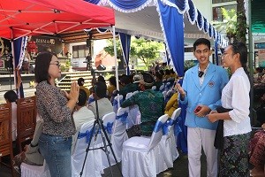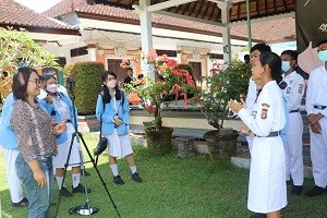 Ni Putu Suaryani melanjutkan perjalanannya menemui para Kader Demokrasi di SMAN 2 Tabanan untuk membuat konten terkait Pemilu serentak 2024. Kebetulan di SMAN 2 Tabanan sedang berlangsung perpisahan kelas XII. (Humas KPU Tabanan).