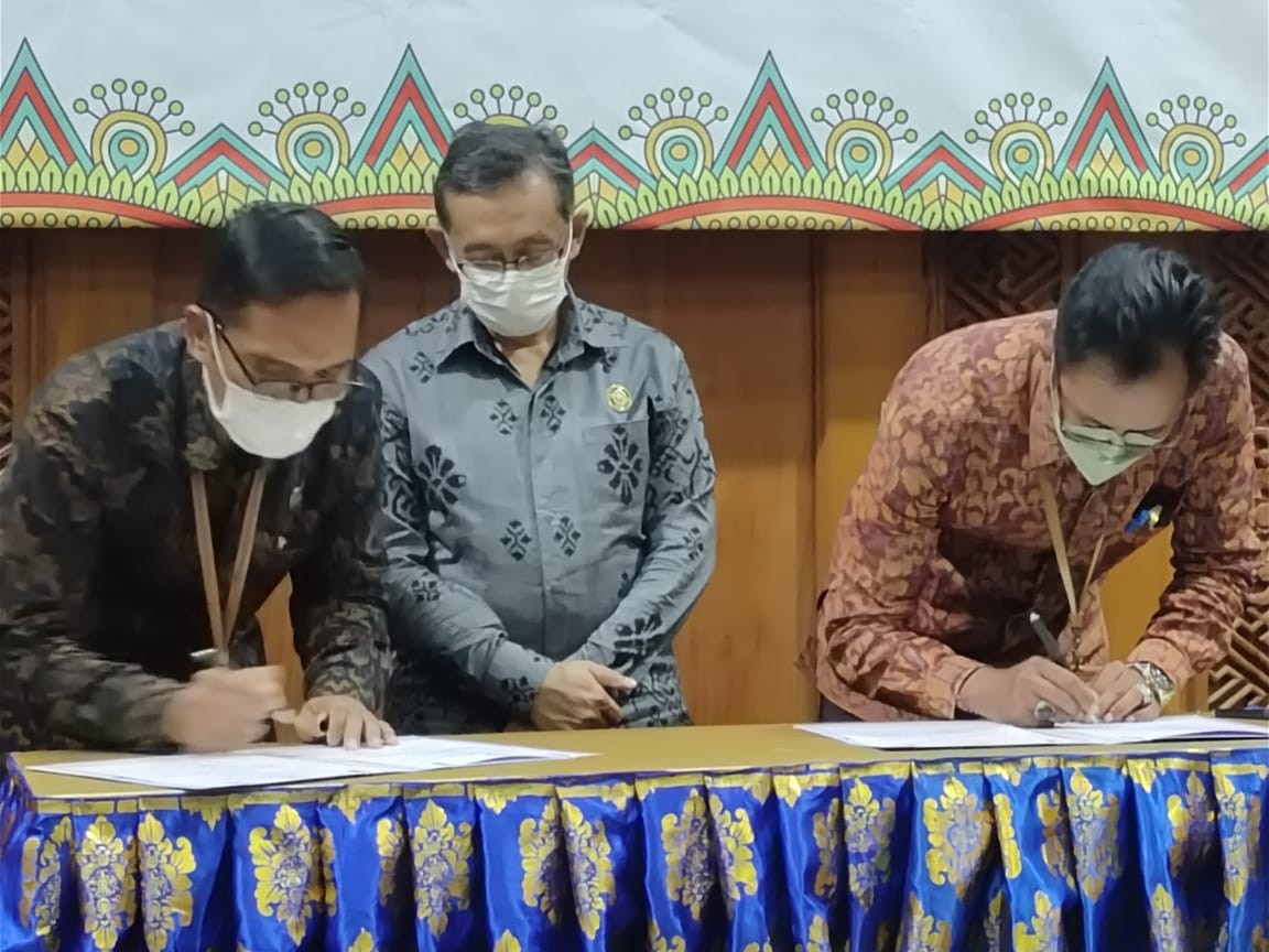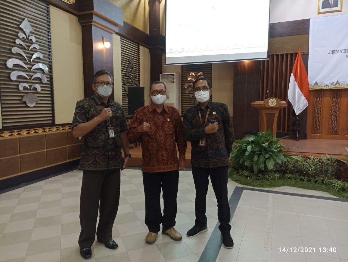 KPU Tabanan, Dangin Carik – Ketua Komisi Pemilihan Umum (KPU) Kabupaten Tabanan, I Gede Putu Weda Subawa beserta Sekretaris KPU Tabanan, I Nyoman Swandika menghadiri acara penyerahan laporan hasil pemeriksaan (LHP) semester II tahun 2021 secara serentak sesuai surat undangan Badan Pemeriksa Keuangan (BPK) Perwakilan Provinsi Bali Nomor 364/S/XIX.DPS/12/2021, tanggal 8 Desember 2021.