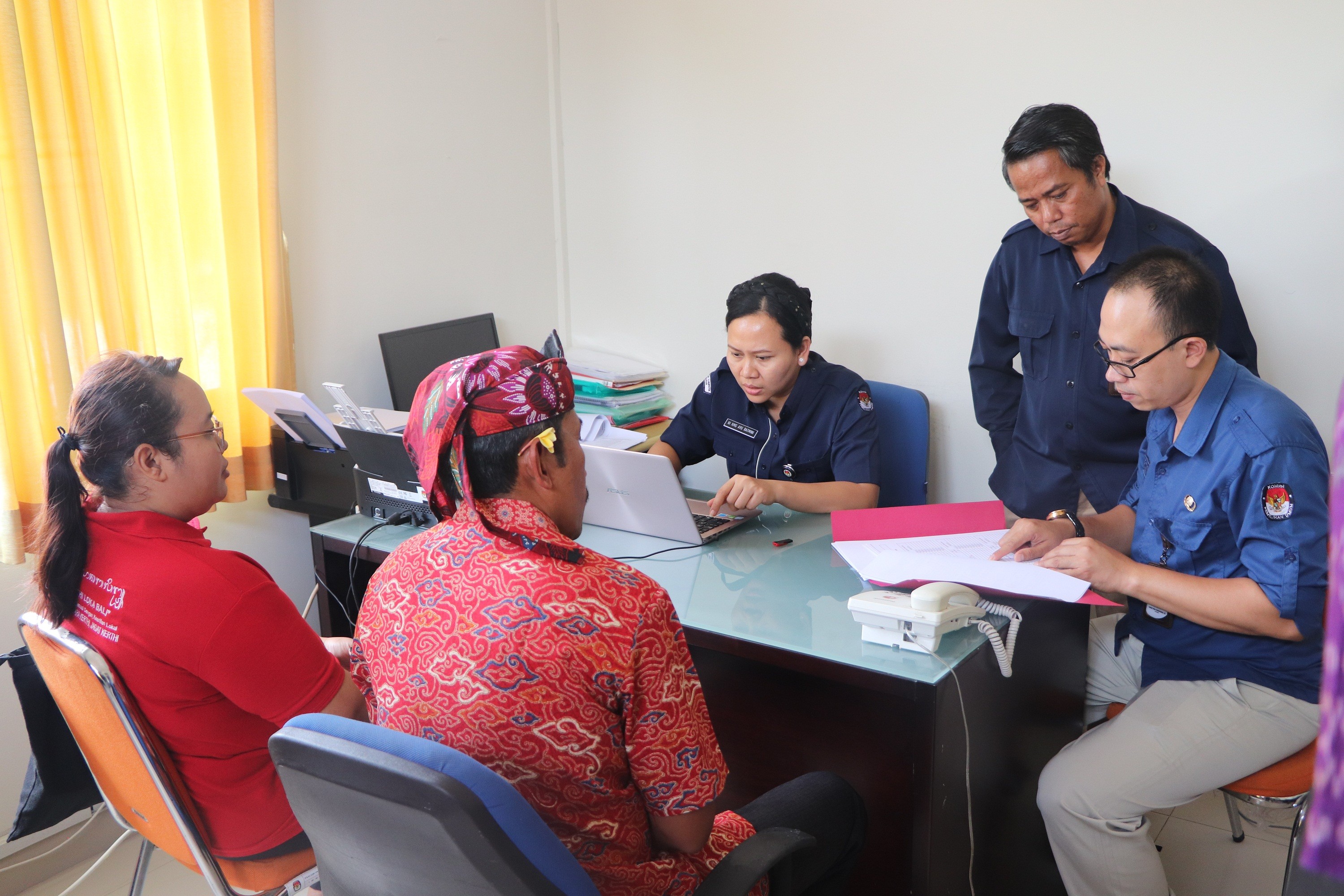 Hadir Ketua KPU Tabanan, I Gede Putu Weda Subawa beserta Anggota KPU Tabanan. Nampak juga salah satu Pejabat Stuktural Sekretariat KPU Tabanan dan Operator Sistem Informasi Pencalonan (SILON) KPU Tabanan. Turut hadir Anggota Badan Pengawas Pemilihan Umum (Bawaslu) Kabupaten Tabanan, I Made Winarya didampingi beberapa jajarannya.