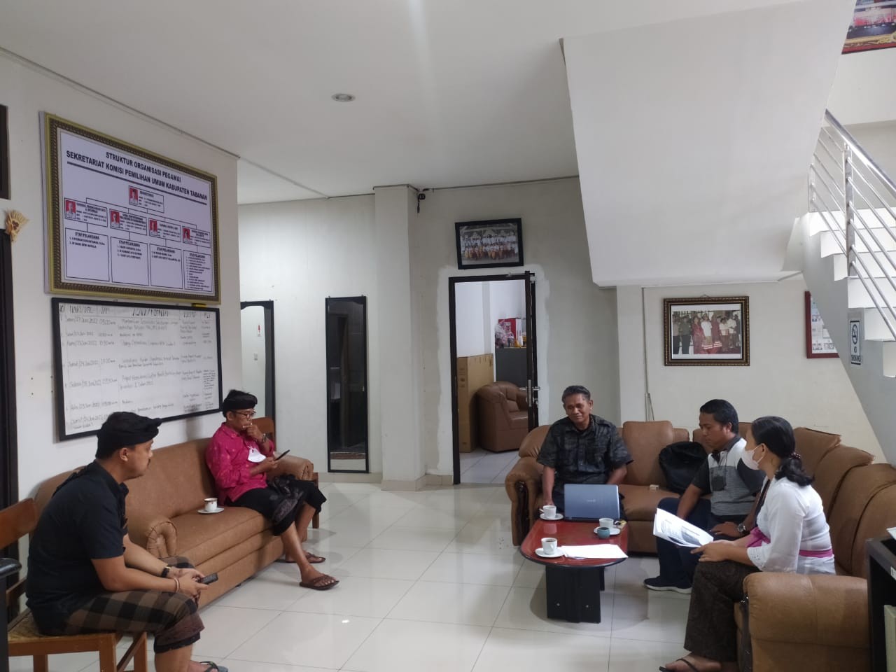 Kehadirannya diterima Ketua KPU Tabanan, I Gede Putu Weda Subawa dan Anggota KPU Tabanan Ketua Divisi Perencanaan, Data dan Informasi, I Ketut Sugina serta Anggota KPU lainnya. Turut dalam kegiatan itu Kasubbag Perencanaan, Data dan Informasi Sekretariat KPU Tabanan, Putu Eviyanti Dewi Lestari.