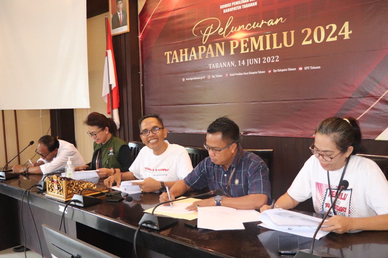 Selain itu hadir Anggota KPU Tabanan Ketua Divisi Hukum dan Pengawasan, I Wayan Sutama dan Ketua Divisi Sosialisasi, Pendidikan Pemilih, Partisipasi Masyarakat dan SDM, Ni Putu Suaryani serta Ketua Divisi Perencanaan, Data dan Informasi, I Ketut Sugina.