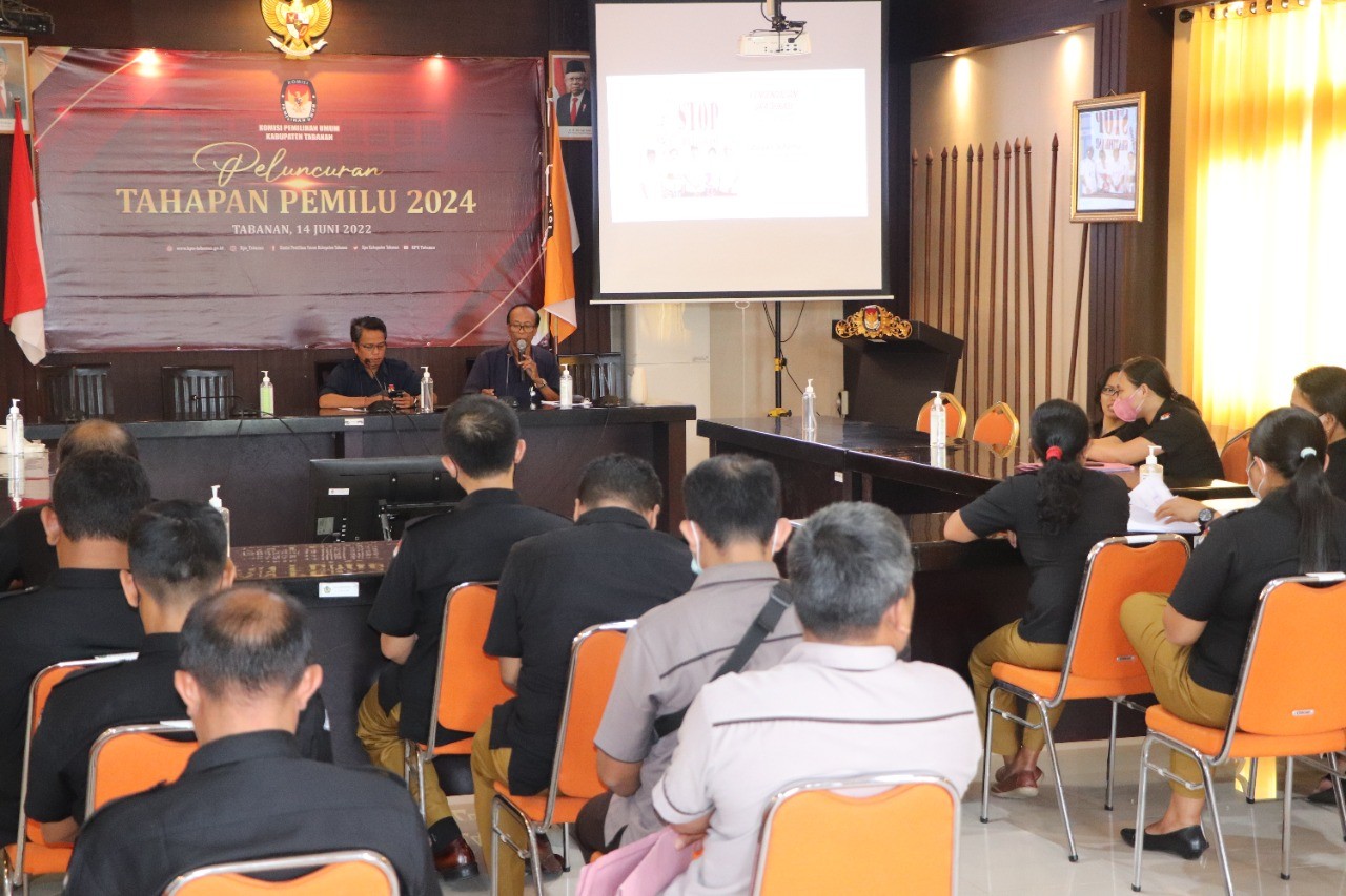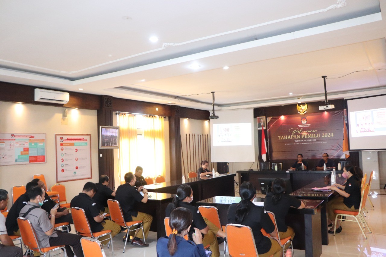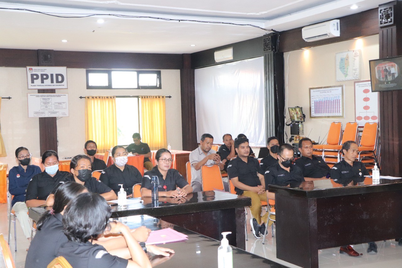 Komisioner KPU Tabanan dimaksud yakni Ketua Divisi Hukum dan Pengawasan, I Wayan Sutama, sedangkan yang hadir selain Ketua KPU Tabanan tampak pula Anggota KPU Tabanan, Sekretaris, para Kasubbag dan seluruh Pelaksana baik dari PNS maupun PPNPN.