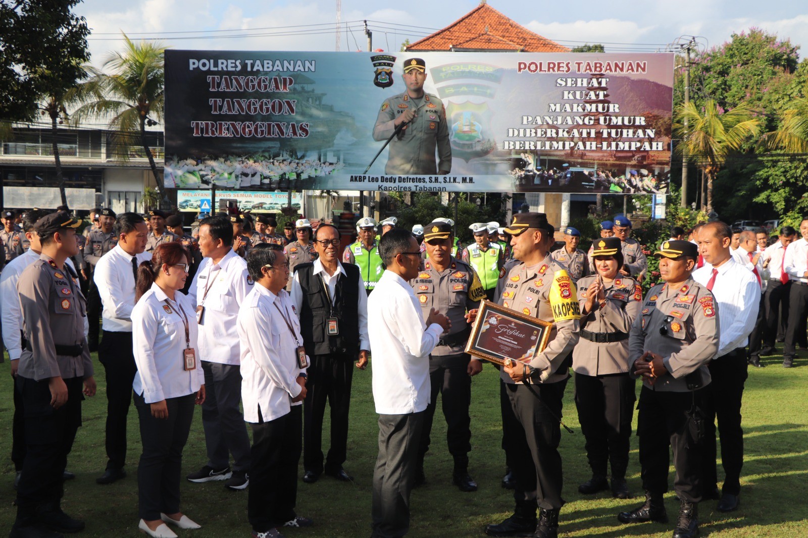 Kapolres Tabanan ungkapkan turut senang atas Penghargaan Terbaik I yang diterima oleh KPU Tabanan dalam pelaksanaan Serah Terima Kirab Pemilu 2024 beberapa hari lalu di Kabupaten Tabanan.