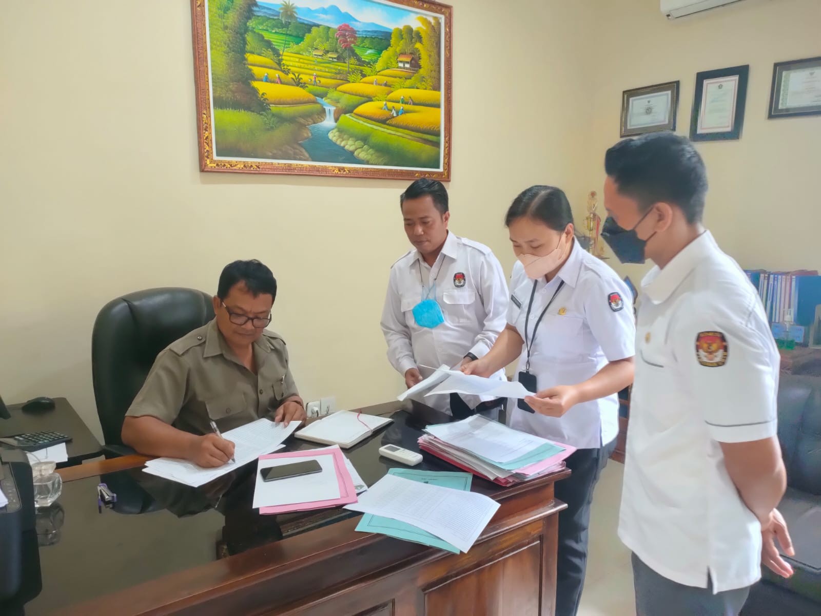 KPU Tabanan, Dangin Carik – Anggota KPU Kabupaten Tabanan Ketua Divisi Perencanaan, Data dan Informasi, I Ketut Sugina, tadi siang mendatangi Kantor Perbekel Desa Dauh Peken, Delod Peken dan Dajan Peken untuk verifikasi faktual data hasil sanding Pemutakhiran Data Pemilih Berkelanjutan (PDPB), Senin (08/08/2022).