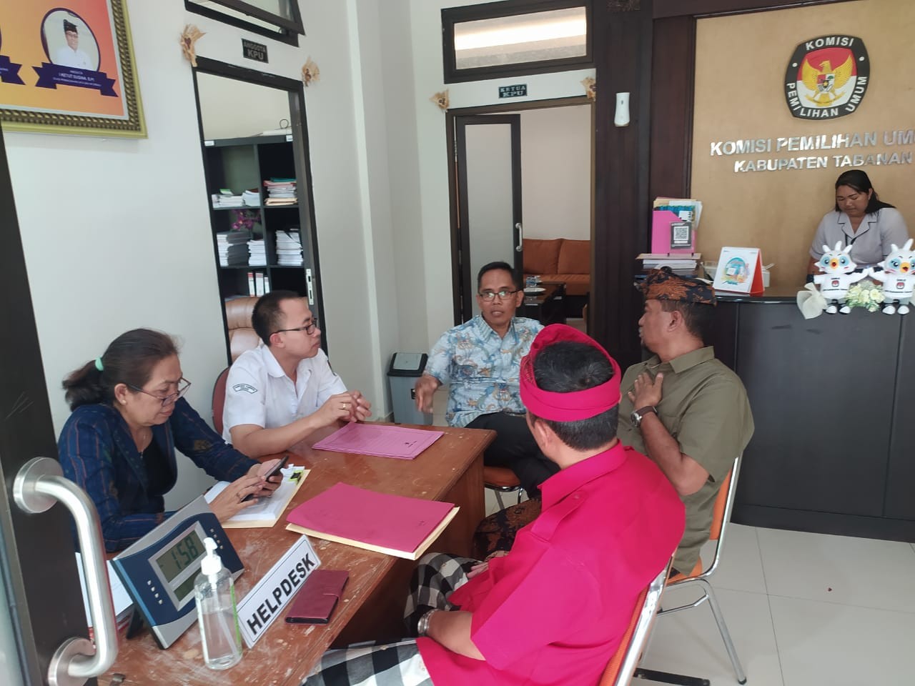 KPU Tabanan, Dangin Carik – Sehubungan dengan Pemilu Serentak 2024 maka dalam masa Verifikasi Administrasi (Vermin) perbaikan dokumen persyaratan Bakal Calon Anggota Dewan Perwakilan Rakyat Daerah (DPRD) Kabupaten Tabanan, Komisi Pemilihan Umum (KPU) Kabupaten Tabanan telah menerima beberapa konsultasi dari beberapa Partai Politik yang ada di Kabupaten Tabanan.
