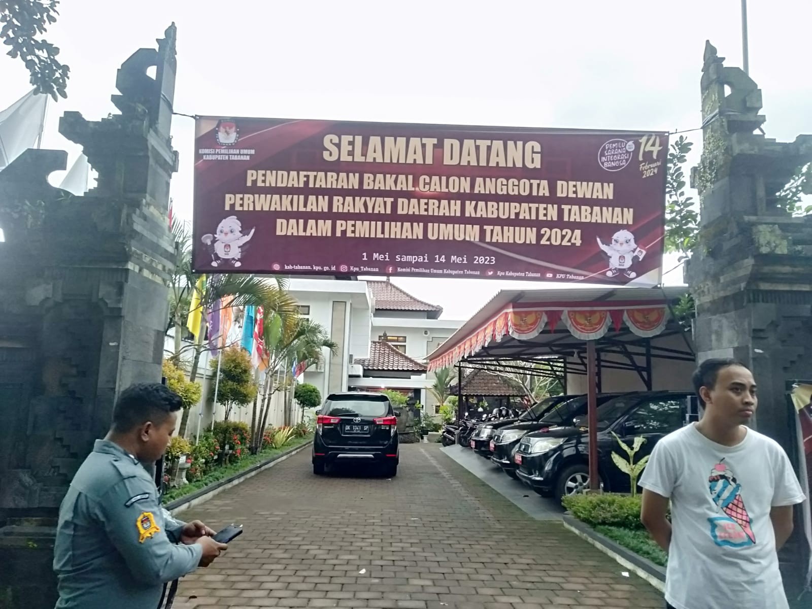 Selain itu KPU Tabanan juga telah memasang spanduk yang berisikan selamat datang pendaftaran Bakal Calon Anggota Dewan Perwakilan Rakyat Daerah Kabupaten Tabanan dalam Pemilu tahun 2024. (Humas KPU Tabanan).