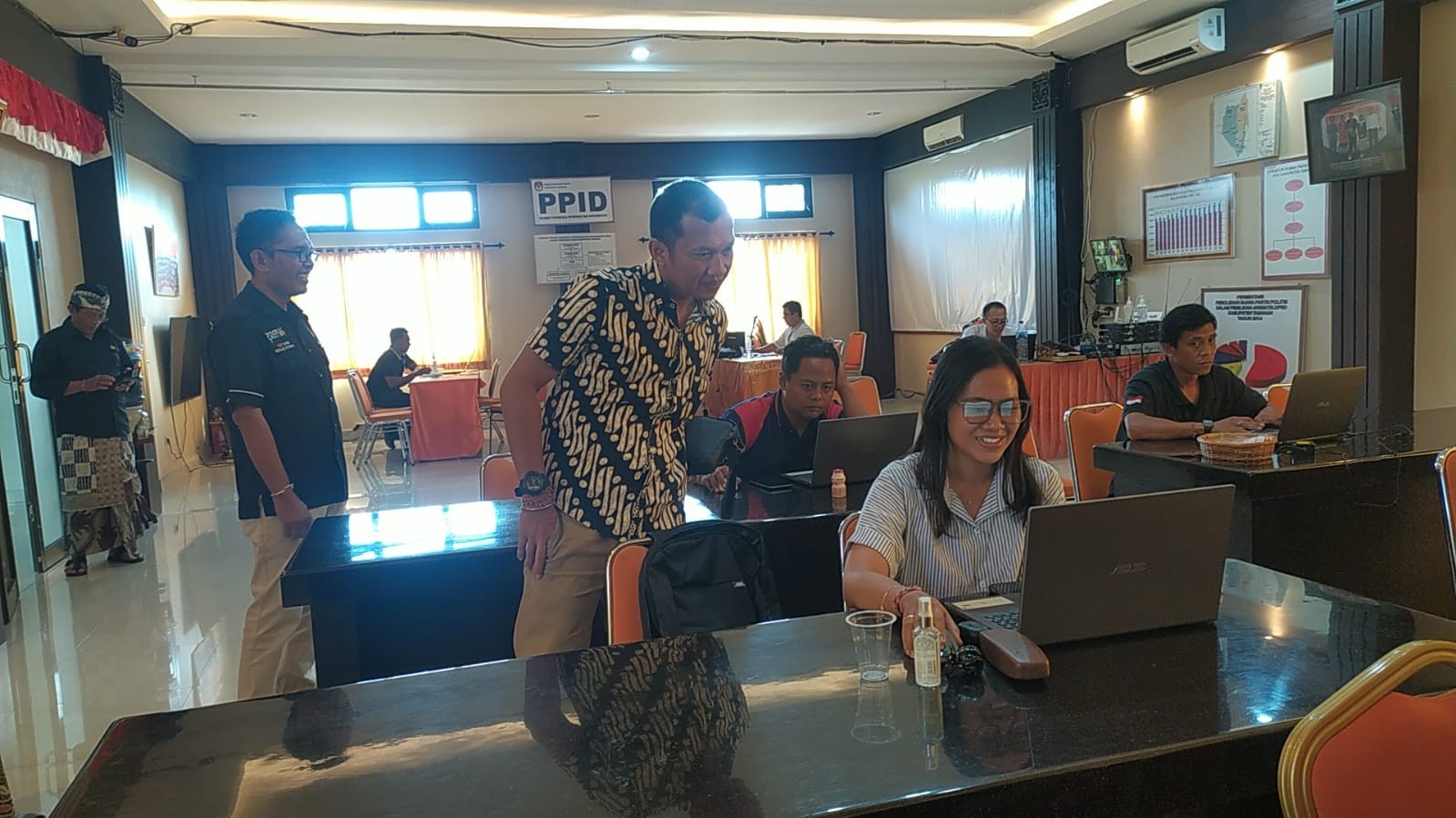 Beliau diterima Ketua KPU Tabanan, I Gede Putu Weda Subawa beserta Anggota KPU Tabanan serta Sekretaris KPU Tabanan. Selain itu terlihat Komisioner Bawaslu Kabupaten Tabanan, I Made Winarya yang sedang melakukan pengawasan di KPU Tabanan.