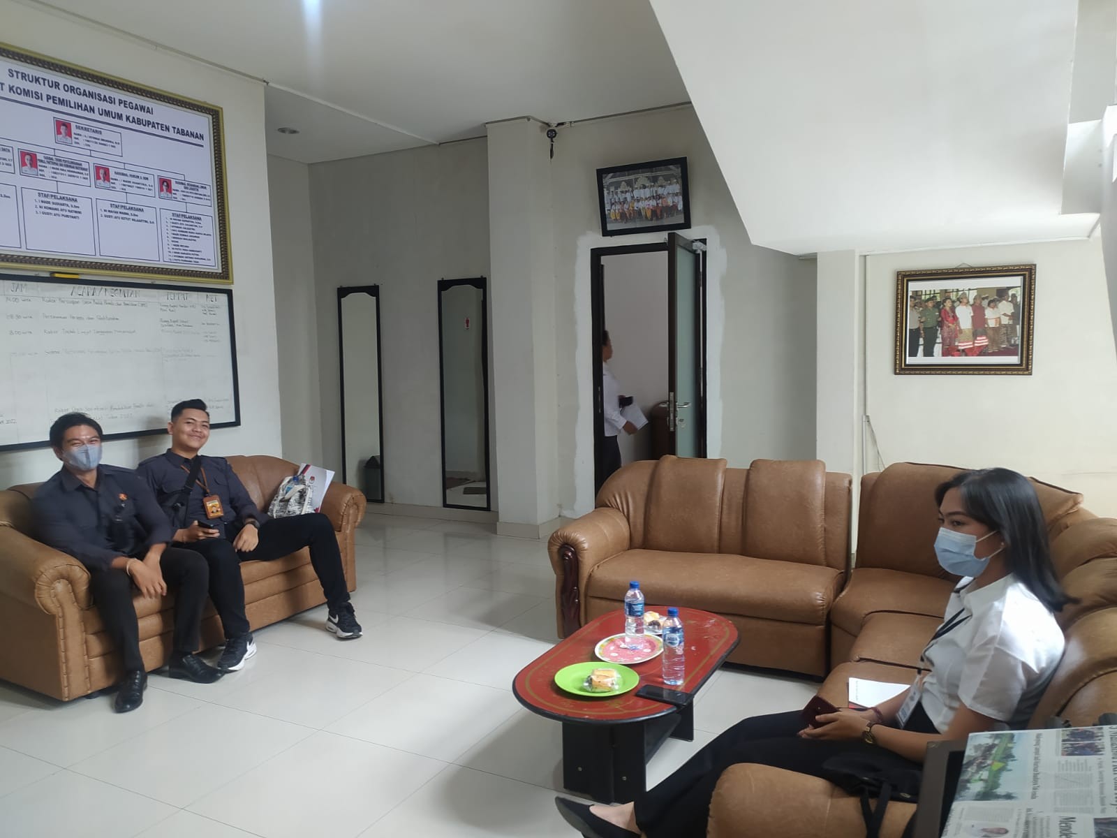 Rombongan diterima Ketua KPU Tabanan, I Gede Putu Weda Subawa serta Anggota KPU Tabanan bertempat di ruang kerja Ketua KPU Tabanan, Senin (12/09/2022). Turut hadir dalam kegiatan itu Sekretaris KPU Tabanan, I Nyoman Swandika.