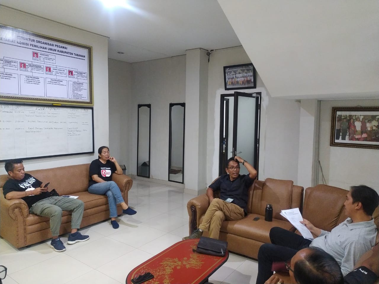 “Kedatangan Kami ke KPU Kabupaten Tabanan dalam rangka monitoring terkait SPIP,” ungkap salah satu Pegawai Sekretariat KPU Bali saat dimintai konfirmasinya. Terlihat pula pengawasan yang dilakukan oleh Bawaslu Kabupaten Tabanan dan juga adanya Masyarakat yang sedang melaporkan dirinya (tanggapan Masyarakat) karena namanya tercatut dalam SIPOL sebagai keanggotaan Parpol.