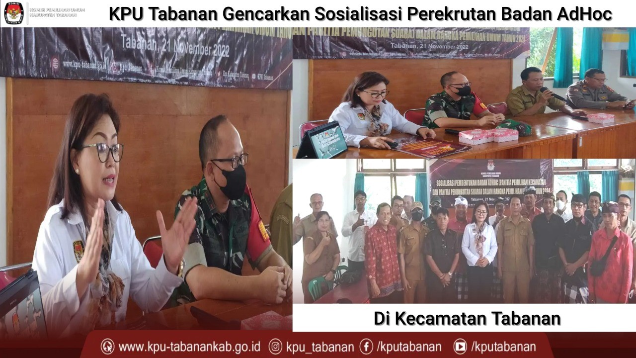 Dalam kesempatan itu KPU Tabanan juga membagikan selebaran kepada para Perbekel untuk disampaikan kepada Warganya yang berisikan ajakan kepada Masyarakat untuk ikut mendaftar sebagai Calon Anggota PPK dan PPS melalui aplikasi Sistem Informasi Anggota KPU dan Badan Ad Hoc (SIAKBA). Selain itu di setiap Kantor Camat dipasang spanduk terkait penerimaan pendaftaran Calon Anggota PPK dan PPS dalam rangka Pemilu Serentak 2024.