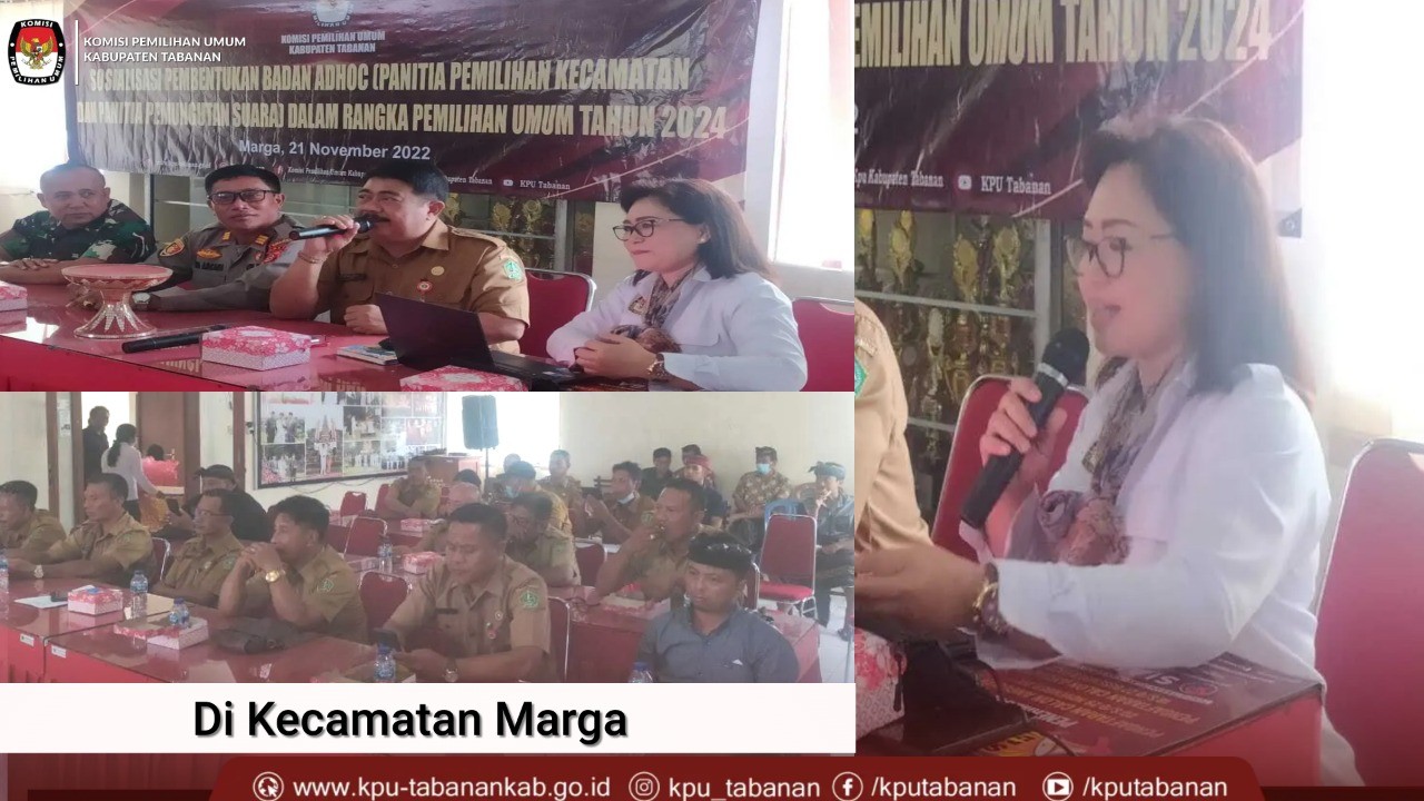Kecamatan yang dituju untuk melaksanakan sosialisasi dimaksud yakni Kecamatan Tabanan, Kediri, marga, Baturiti dan Penebel, Senin (21/11/2022). Untuk tempat pelaksanaan diadakan di masing-masng ruang rapat Kantor Camat kecuali untuk yang di Kecamatan Penebel dilangsungkan di Balai Serba Guna Desa Penebel dan yang di Kecamatan Kediri dilaksanakan di Wantilan yang berlokasi masih di areal Kantor Camat Kediri.