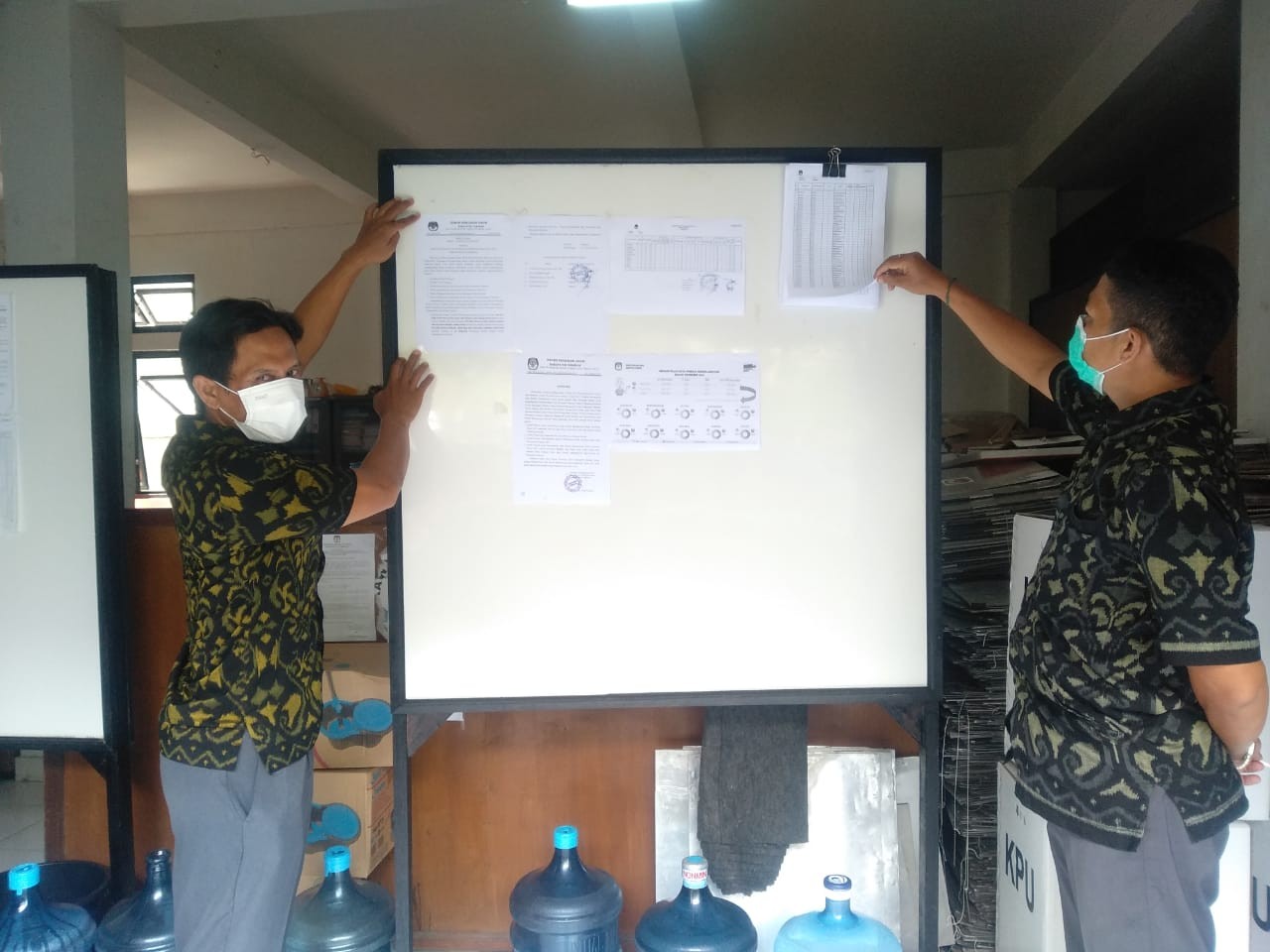 Selanjutnya hasil pemutakhiran data pemilih berkelanjutan bulan Desember 2021 tersebut ditempelkan pada papan pengumuman KPU Tabanan dan diunggah pula pada media online KPU Tabanan. Kegiatan yang dilaksanakan pada masa Virus Corona atau Covid-19 dengan tetap memperhatikan protokol kesehatan seperti menjaga jarak fisik atau physical distancing, menggunakan masker, menggunakan cairan pembersih tangan atau hand zanitizer serta mencuci tangan dengan sabun dan air mengalir. (Humas KPU Tabanan)