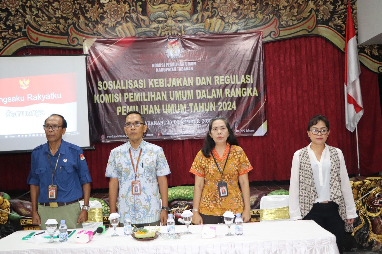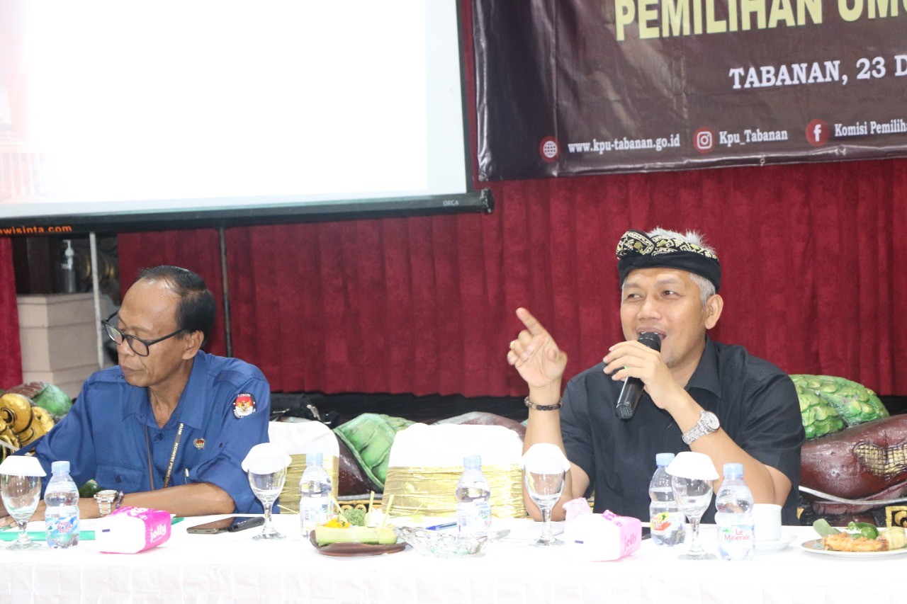 Diawali dengan menyanyikan lagu kebangsaan Indonesia Raya dan Doa bersama dilanjutkan sambutan Ketua KPU Tabanan. Sebagai Moderator adalah Anggota KPU Tabanan Ketua Divisi Hukum dan Pengawasan, I Wayan Sutama.