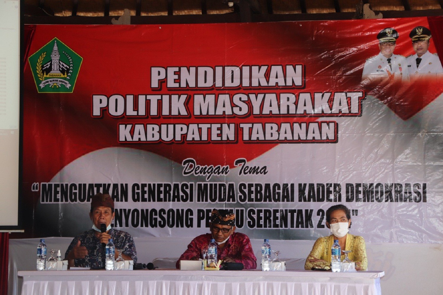 KPU Tabanan, Dangin Carik – Komisioner Komisi Pemilihan Umum (KPU) Kabupaten Tabanan yakni Ketua Divisi Teknis Penyelenggaraan, Luh Made Sunadi sebagai Narasumber kegiatan pendidikan politik Masyarakat yang diadakan Pemkab Kabupaten Tabanan melalui Badan Kesbangpol Kabupaten Tabanan, bertempat di Aula Warung Nami Rasa Tabanan, Kamis (02/06/2022).