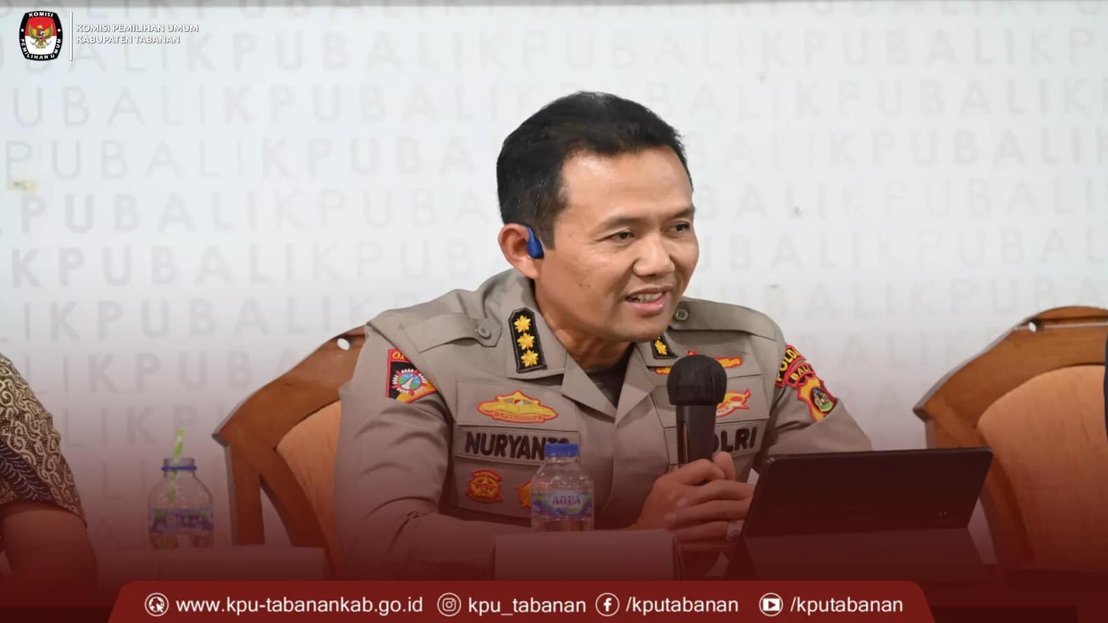 Hadir pihak Polda Bali terkait kesiapan bidang pengamanan saat Kirab dimulai hingga selesai. Agung Lidartawan, Ketua KPU Provinsi Bali menekankan kepada seluruh peserta yang hadir diantaranya, Anggota KPU Kab/Kota Ketua Divisi Sosialisasi, Kasubbag Teknis Penyelenggaraan Pemilu, Partisipasi dan Hubungan Masyarakat serta Staf Humas KPU Kab/Kota se-Bali untuk bersinergi dalam penyebaran informasi Pemilu Serentak 2024 ini, baik melalui media sosial, tatap muka, media seni atau metode lainnya. “Sukseskan Pemilu Serentak 2024," ucapnya.” (Humas KPU Tabanan).