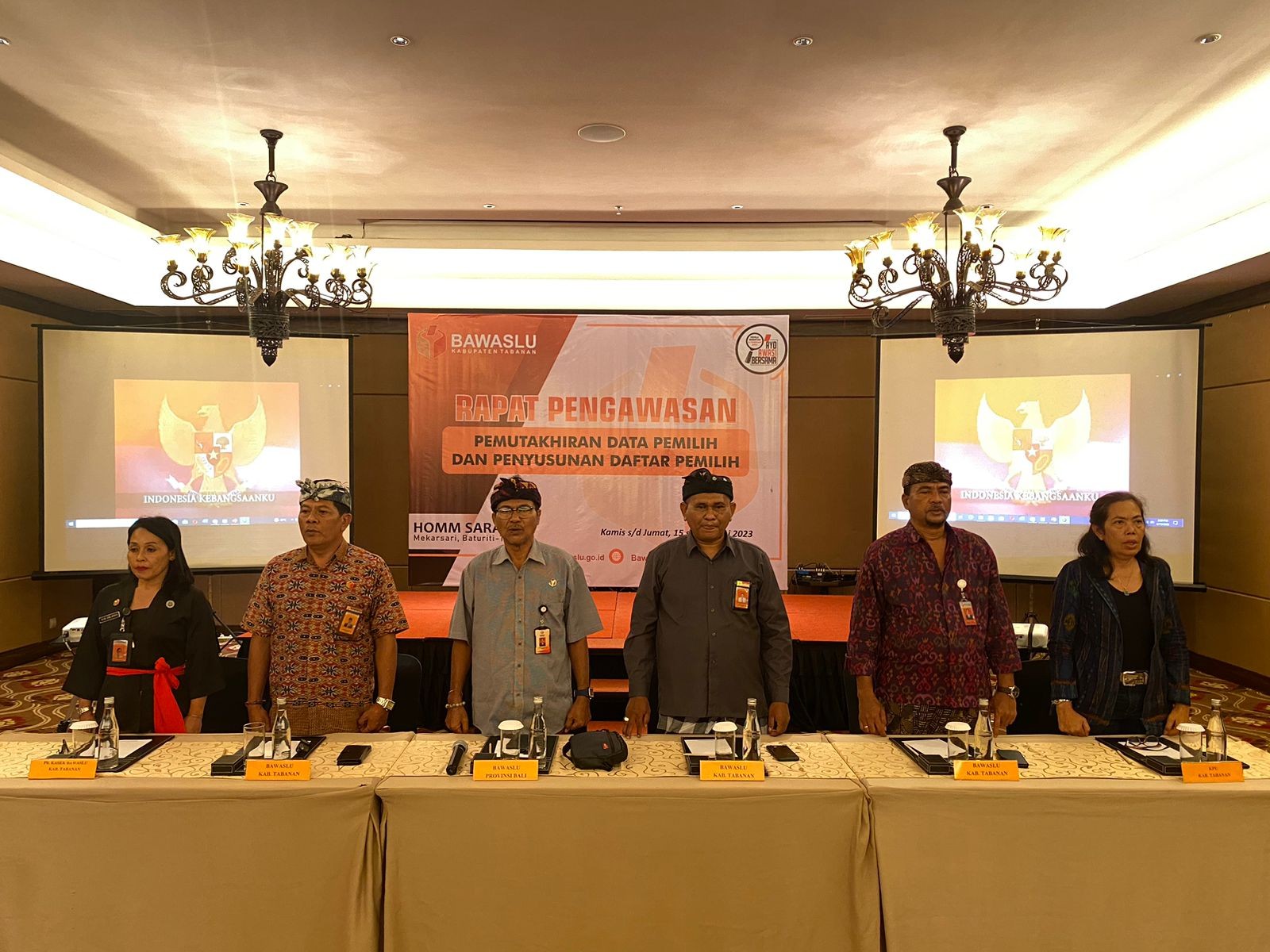 Menurut informasi yang didapat bahwa Kegiatan akan dilangsungkan selama 2 hari yakni mulai Kamis – Jumat (15 – 16 Juni 2023). Acara diisi dengan menyanyikan lagu kebangsaan, Indonesia Raya dan Mars Pengawas Pemilu, Doa bersama, laporan Panitia serta sambutan Ketua Bawaslu, I Ketut Narta. Dirangkai dengan pemaparan materi yang disampaikan oleh penggiat Pemilu serta dari Bawaslu Provinsi Bali dan Bawaslu Tabanan. (Humas KPU Tabanan).