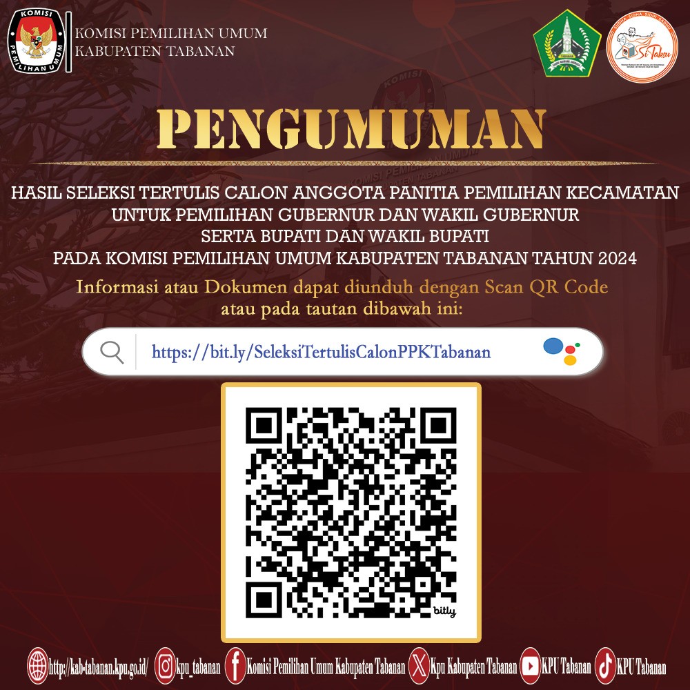 Pengumuman Hasil Seleksi Tes Tertulis CAT Calon Panitia Pemilihan Kecamatan Pilkada Tabanan 2024