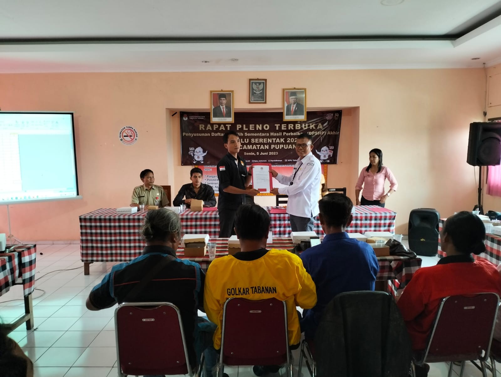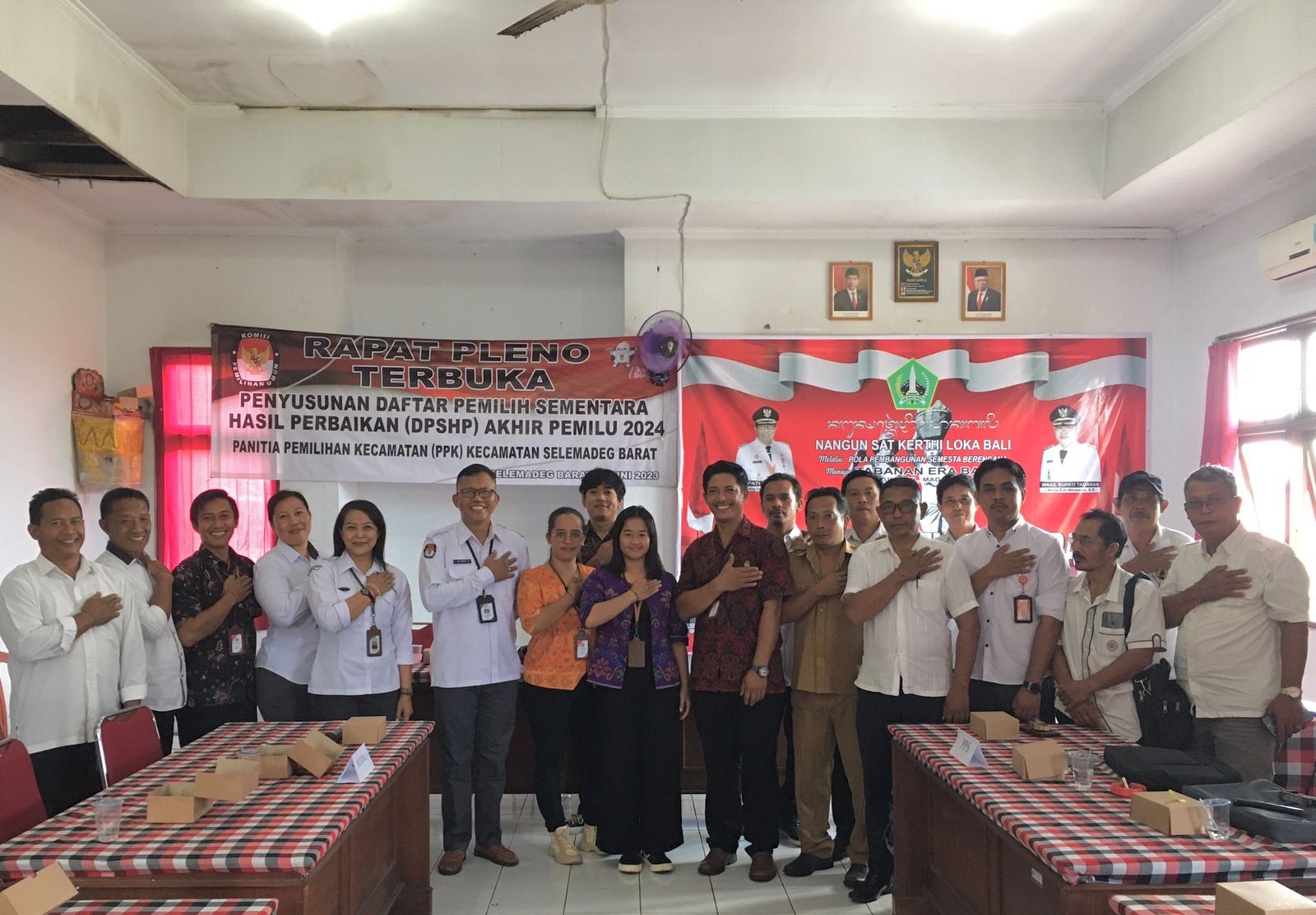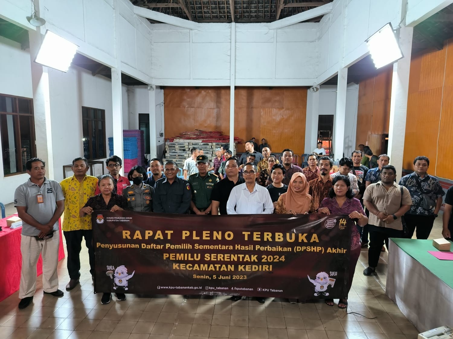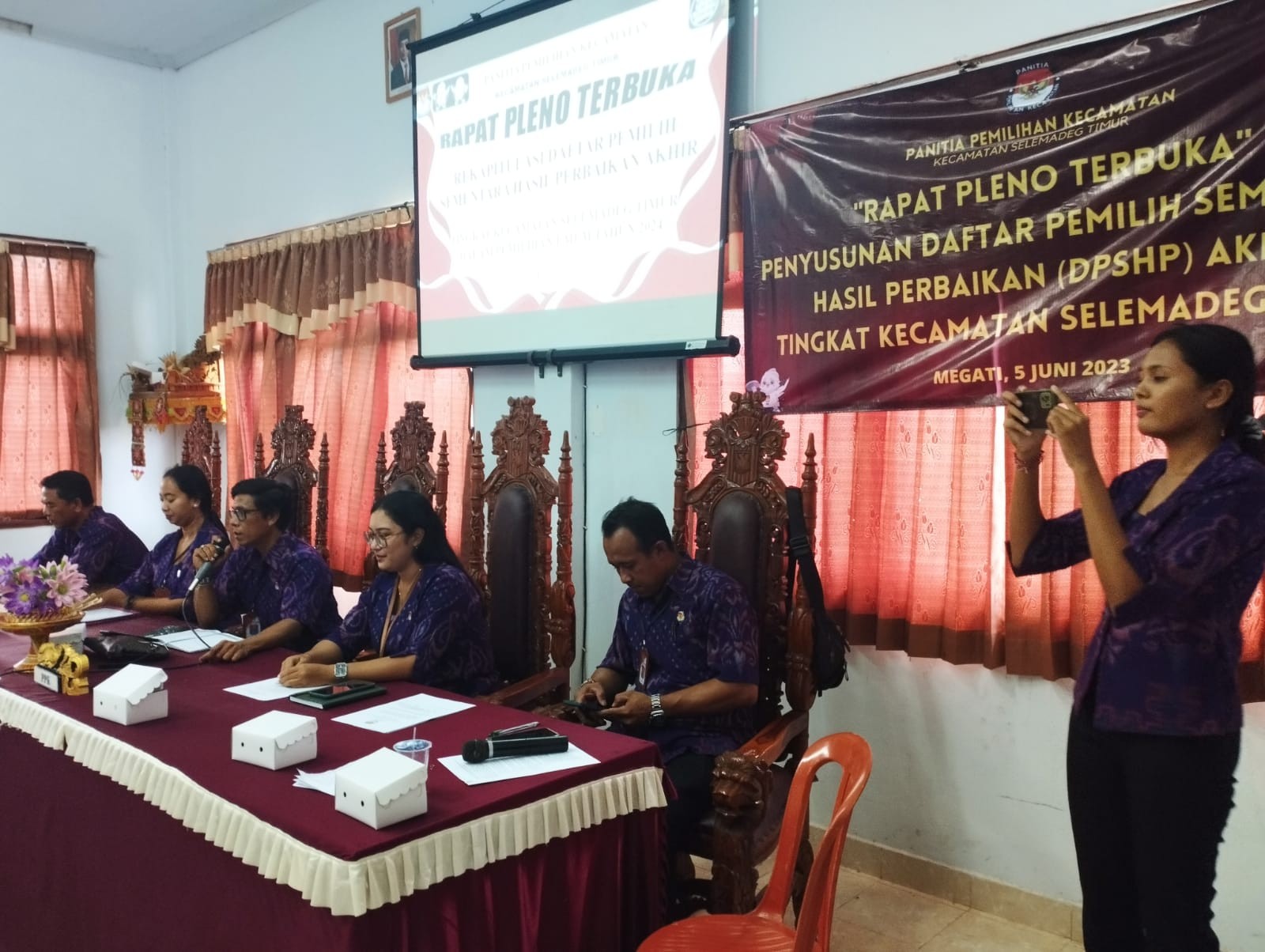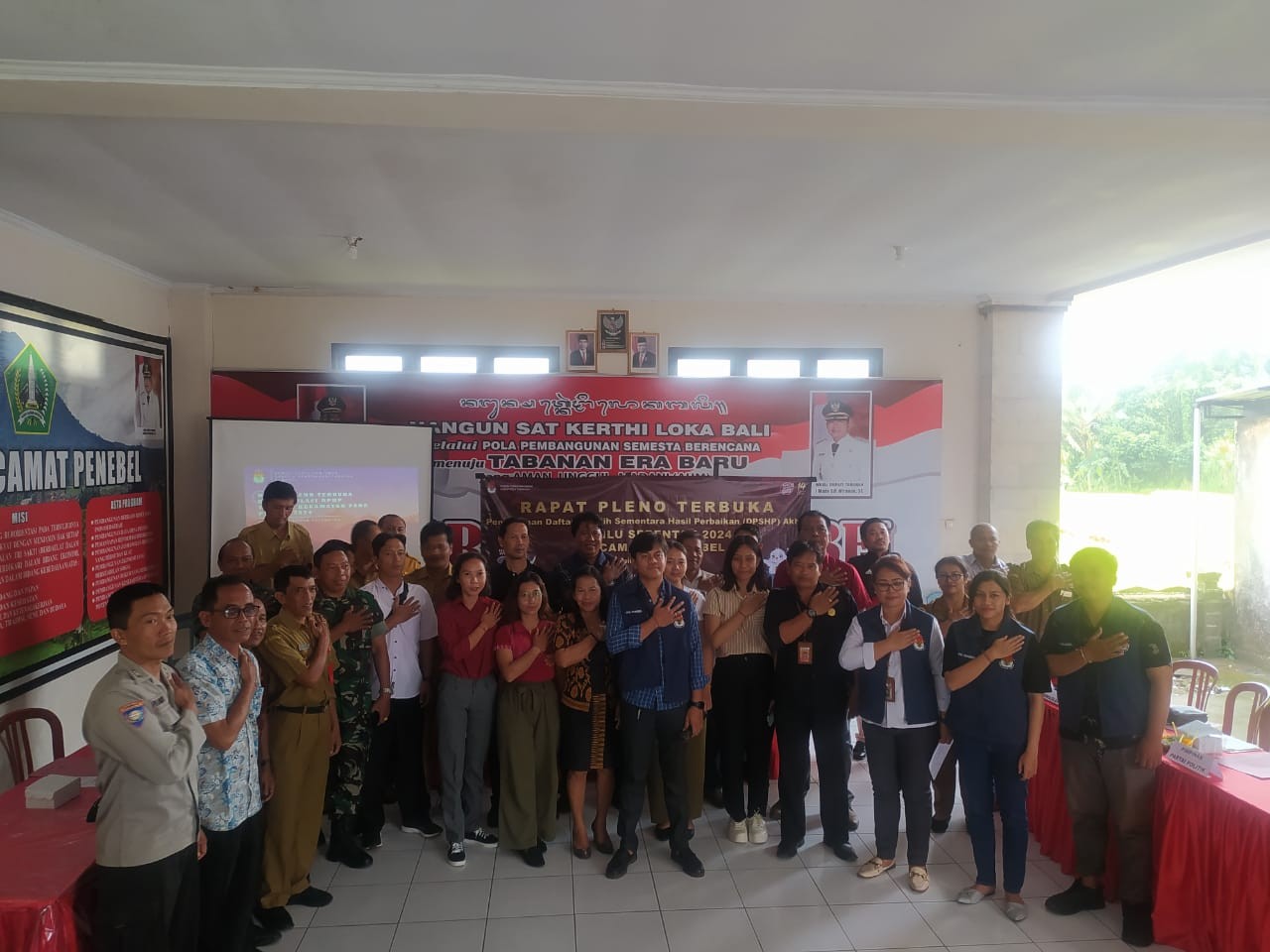 Berdasarkan pantauan di lapangan, untuk di Kecamatan Penebel dan Baturiti, kegiatan rapat pleno terbuka penyusunan DPSHP akhir dalam Pemilu Serentak 2024 diadakan pada salah satu ruangan yang ada di areal Kantor Camat. Terlihat hadir Ketua dan Anggota PPK, unsur Muspika dan Panitia Pemungutan Suara (PPS).