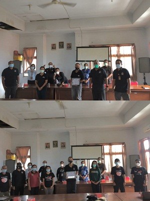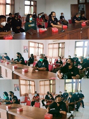 Kegiatan yang dilaksanakan dalam situasi pandemi Covid-19 atau Virus Corona, dengan tetap memperhatikan Protokol Kesehatan seperti physical distancing atau menjaga jarak fisik, menggunakan masker, pengecekan suhu/temperatur tubuh dengan thermogun, menggunakan hand zanitizer atau cairan pembersih tangan serta mencuci tangan dengan sabun dan air mengalir.