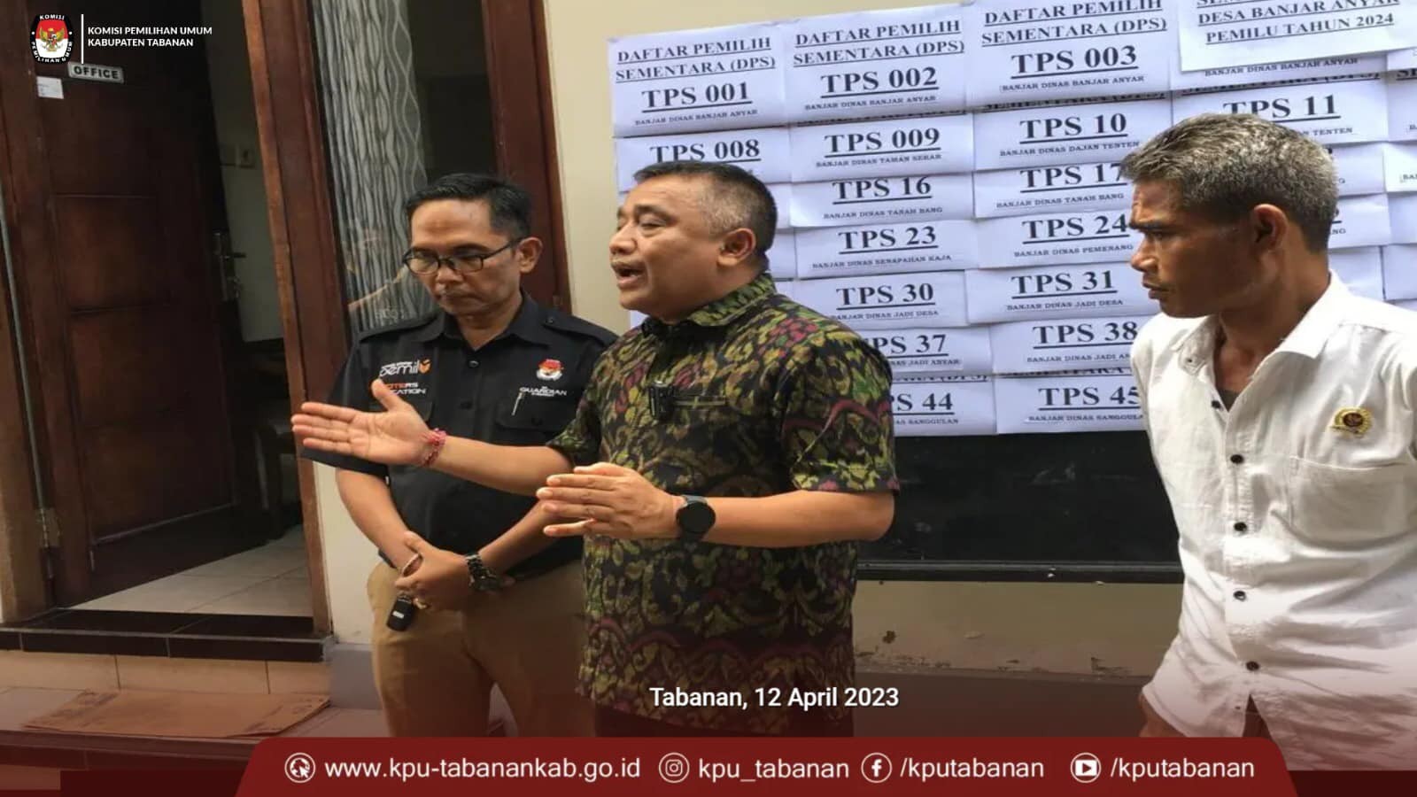 Ketua KPU Provinsi Bali, I Dewa Agung Gede Lidartawan, didampingi Ketua KPU Kabupaten Tabanan, I Gede Putu Weda Subawa beserta Jajaran hingga Panitia Pemilihan Kecamatan (PPK) melaksanakan monitoring terhadap pelaksanaan penempelan DPS tersebut.