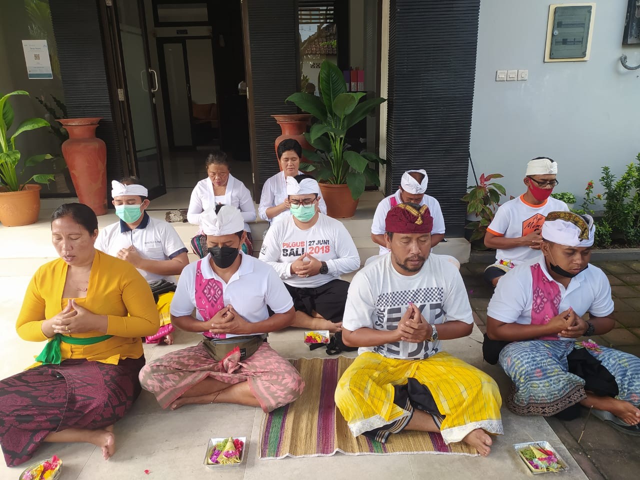 KPU Tabanan, Dangin Carik – Jajaran Komisi Pemilihan Umum (KPU) Kabupaten Tabanan mulai dari Ketua KPU Tabanan yakni I Gede Putu Weda Subawa beserta Anggota KPU Tabanan melaksanakan Persembahyangan bersama dalam rangka hari suci Purnama Kedasa, bertempat di halaman Padmasana Kantor KPU Tabanan, sekitar pukul 09.15 Wita, Kamis (17/03/2022).