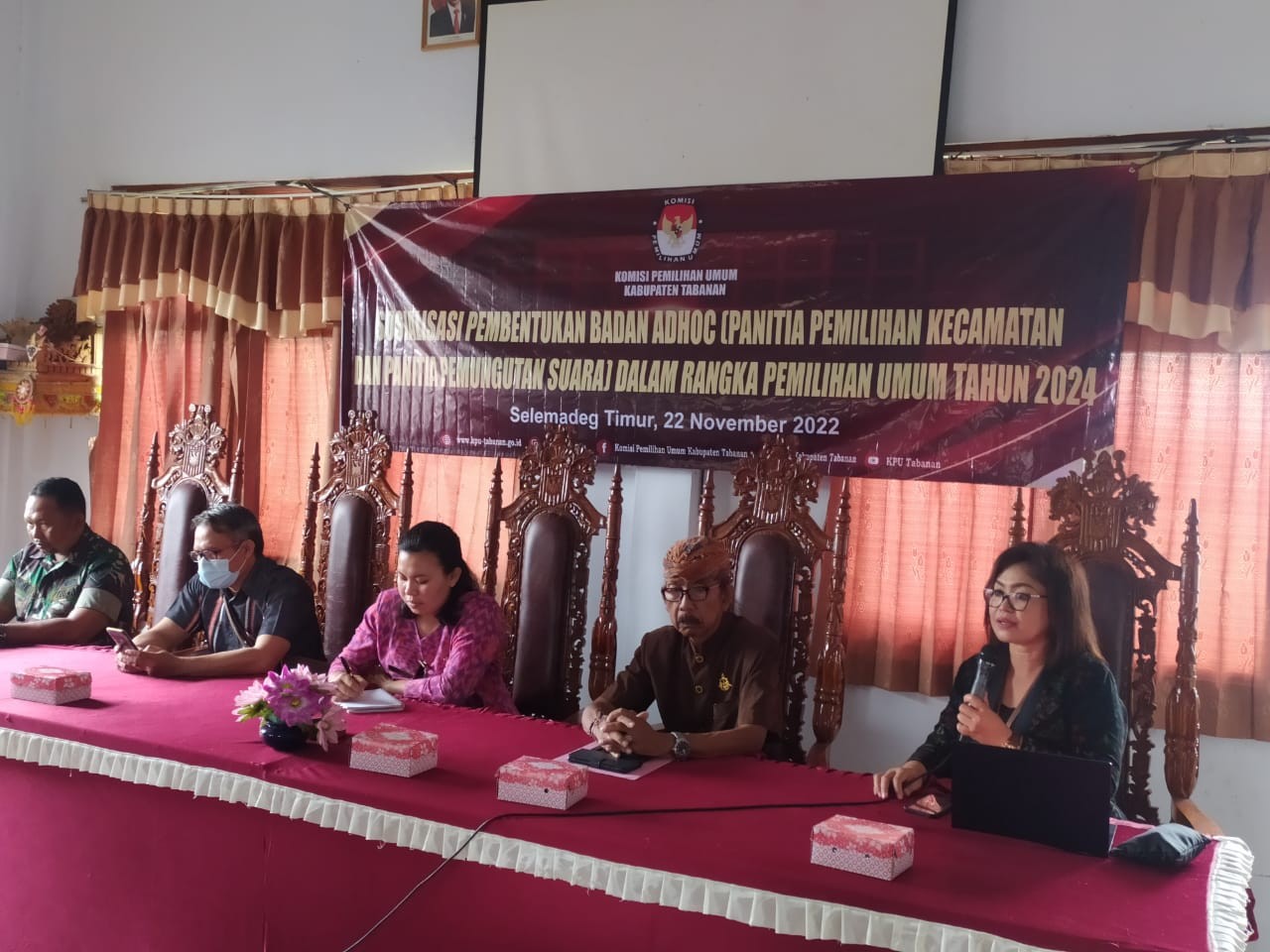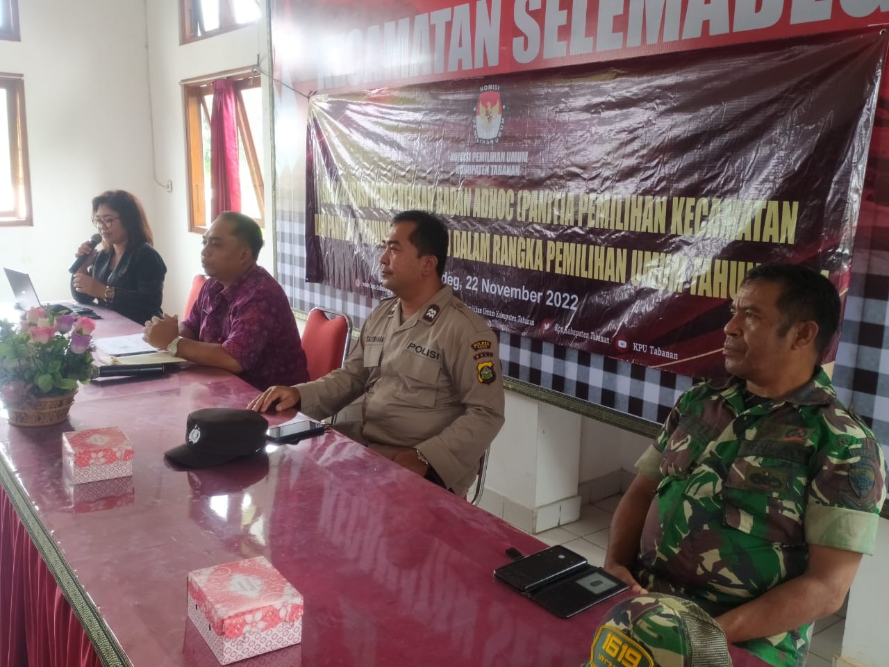 Selain itu mempunyai Integritas, pribadi yang kuat, jujur dan adil. Surat pendaftaran dan kelengkapan dokumen disampaikan kepada KPU Tabanan sejak tanggal 20 November 2022 – 29 November 2022, pukul 17.00 Wita, melalui siakba.kpu.go.id. dan dokumen fisik disampaikan pada saat sebelum pelaksanaan seleksi tertulis atau bisa juga melalui Petugas pendaftaran di Kantor Sekretariat KPU Tabanan yang beralamat di Jalan PB. Sudirman Nomor 1 Dangin Carik, Tabanan, Telp. (0361) 7992706.” Selain itu Beliau juga menjelaskan syarat lainnya dan yang paling penting tidak tersangkut dalam SIPOL. Komisioner KPU Tabanan itu juga menyampaikan bahwa Pemilu Serentak akan diselenggarakan pada hari Rabu tanggal 14 Februari tahun 2024.