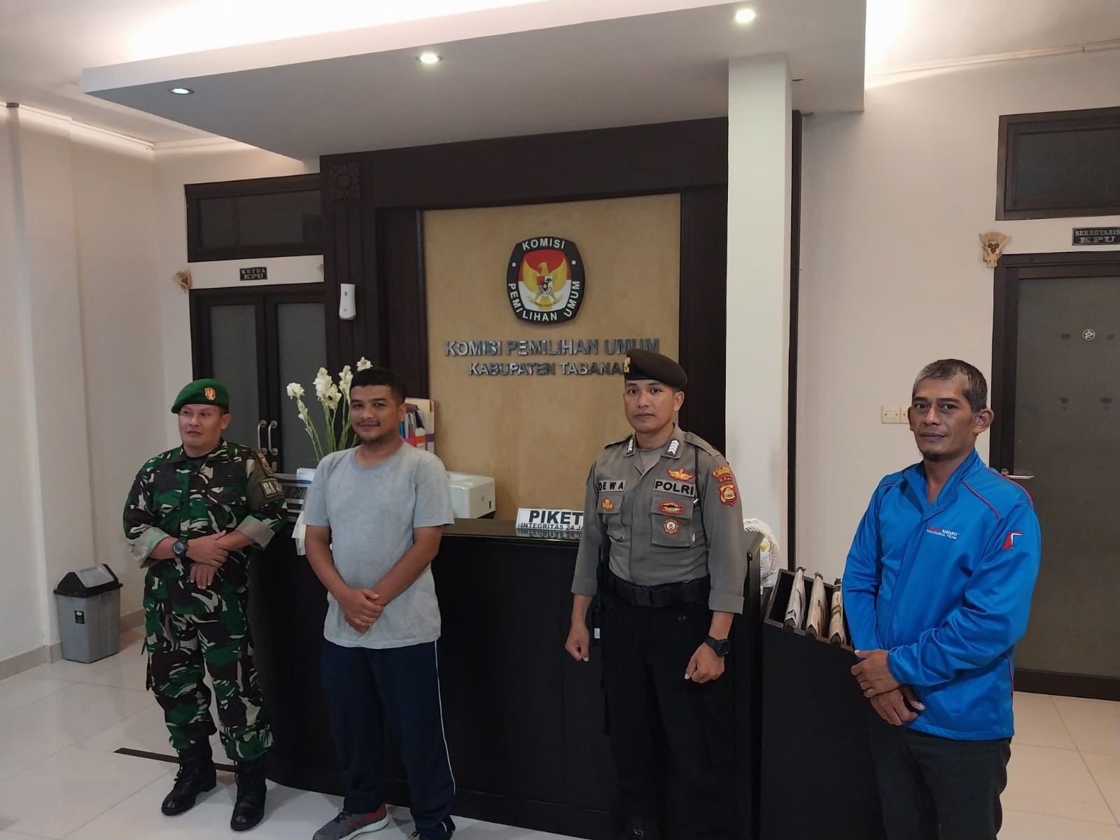Pihak kepolisian dari Polres Tabanan juga secara bergantian selama 24 jam stand by di Kantor KPU Tabanan maupun di gudang logistik KPU Tabanan per 19 Oktober 2023 kemarin. Sebagai informasi, Personel Komando Distrik Militer (Kodim) 1619 Tabanan juga tidak ketinggalan dalam menunjukan dukungannya, terbukti beberapa Anggotanya juga melaksanakan patroli ke Kantor KPU Tabanan.