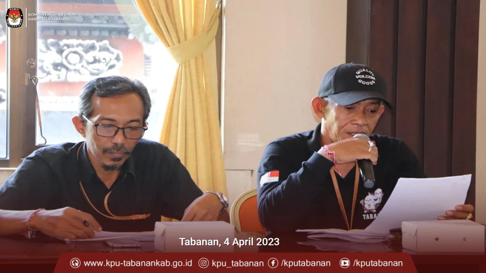 KPU Tabanan, Dangin Carik – Melansir dari unggahan media sosial Komisi Pemilihan Umum (KPU) Kabupaten Tabanan hari Selasa tanggal 4 April 2023, “Anggota KPU Tabanan Ketua Divisi Perencanaan, Data dan Informasi, I Ketut Sugina, kumpulkan Ketua dan Anggota Panitia Pemilihan Kecamatan (PPK) yang membidangi Data Pemilih pada Selasa (04/04/2023) di Kantor KPU Tabanan untuk melaksanakan Pra Rapat Pleno Terbuka Rekapitulasi Daftar Pemilih Sementara (DPS) tingkat Kabupaten Tabanan.