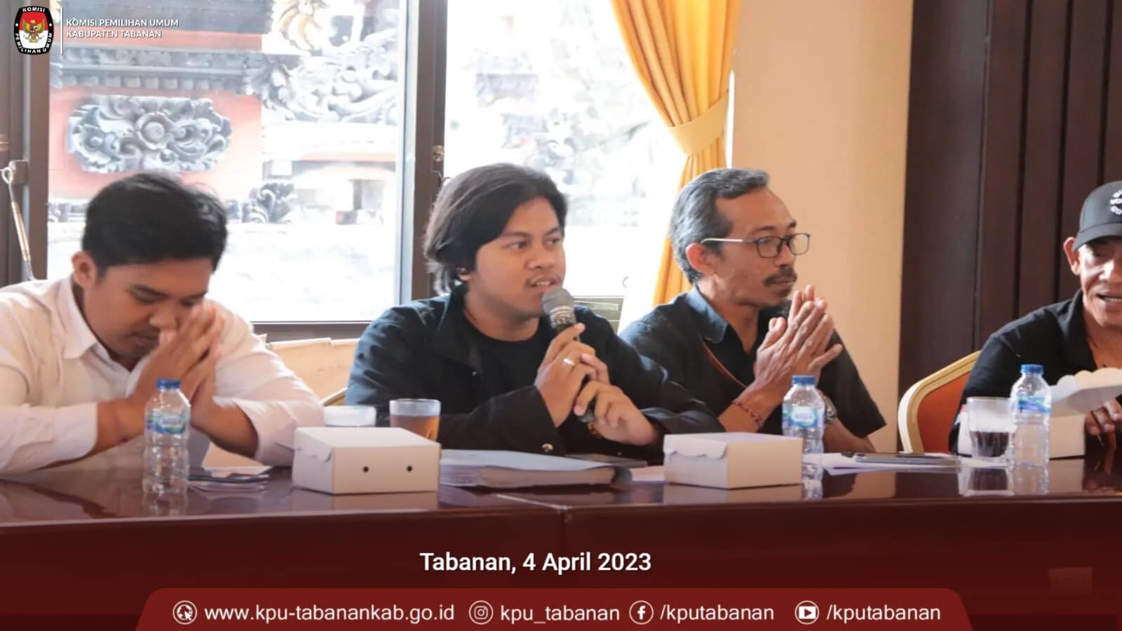 Hadir Ketua Badan Pengawas Pemilihan Umum (Bawaslu) Kabupaten Tabanan, I Ketut Narta dan memberikan tanggapan atas rekap yang disampaikan PPK dari masing-masing Kecamatan. Narta menyampaikan bahwa dari Pemilu ke Pemilu, Data Pemilih ini yang paling sering menjadi masalah, entah itu dari Pemilih yang pindah domisili lalu tidak melapor kepada Kepala Wilayah (Kawil), Pemilih meninggal yang masih terdaftar, Pemilih ganda dan lainnya.