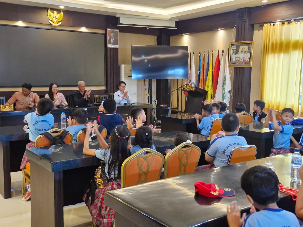 Sadar pentingnya Pendidikan Pemilih sejak usia dini, SD Immaculata berkunjung di Kantor KPU Tabanan pada Selasa 25 Maret 2025. Rombongan disambut hangat oleh Ketua, Anggota dan Sekretaris KPU Tabanan dan diterima di ruang Rumah Pintar Pemilu ( RPP ). Diawali dengan sambutan Ketua KPU Tabanan, I Wayan Suwitra, S.H. kemudian penyampaian materi materi dasar dengan metode yang mudah dipahami oleh siswa/siswi sesuai usia mereka.