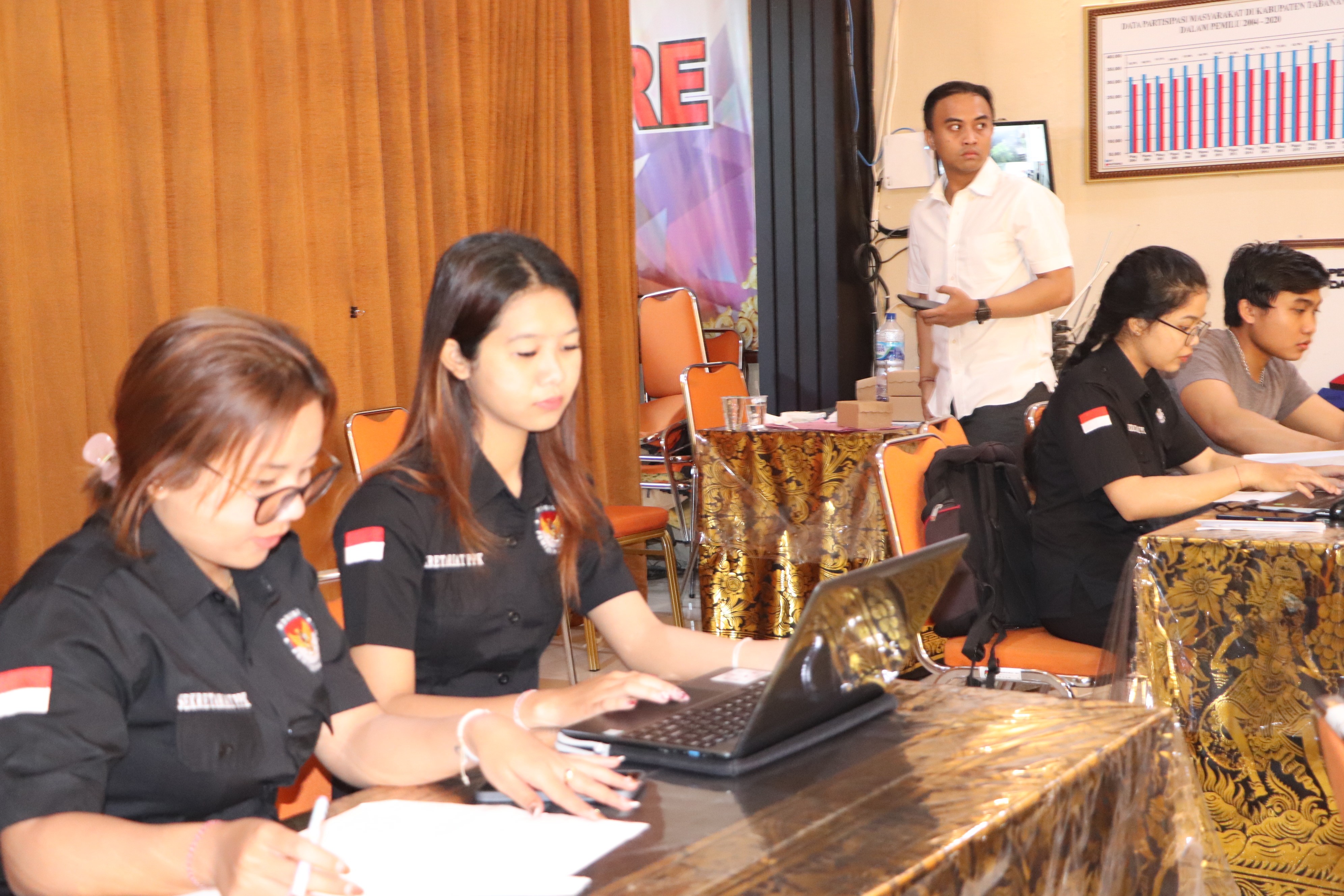 Demi lancarnya kegiatan, seluruh Peserta membawa lap top. “Saya bersama Peserta yang hadir melaksanakan cek data yang di upload pada aplikasi SITAB oleh PPS,” jelas Kasubbag Keuangan, Umum dan Logistik Sekretariat KPU Tabanan, Gusti Ayu Putu Kristiana Dewi dalam keterangannya. Beliau adalah Orang yang menggawangi kegiatan ini.