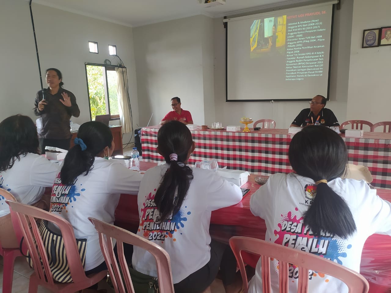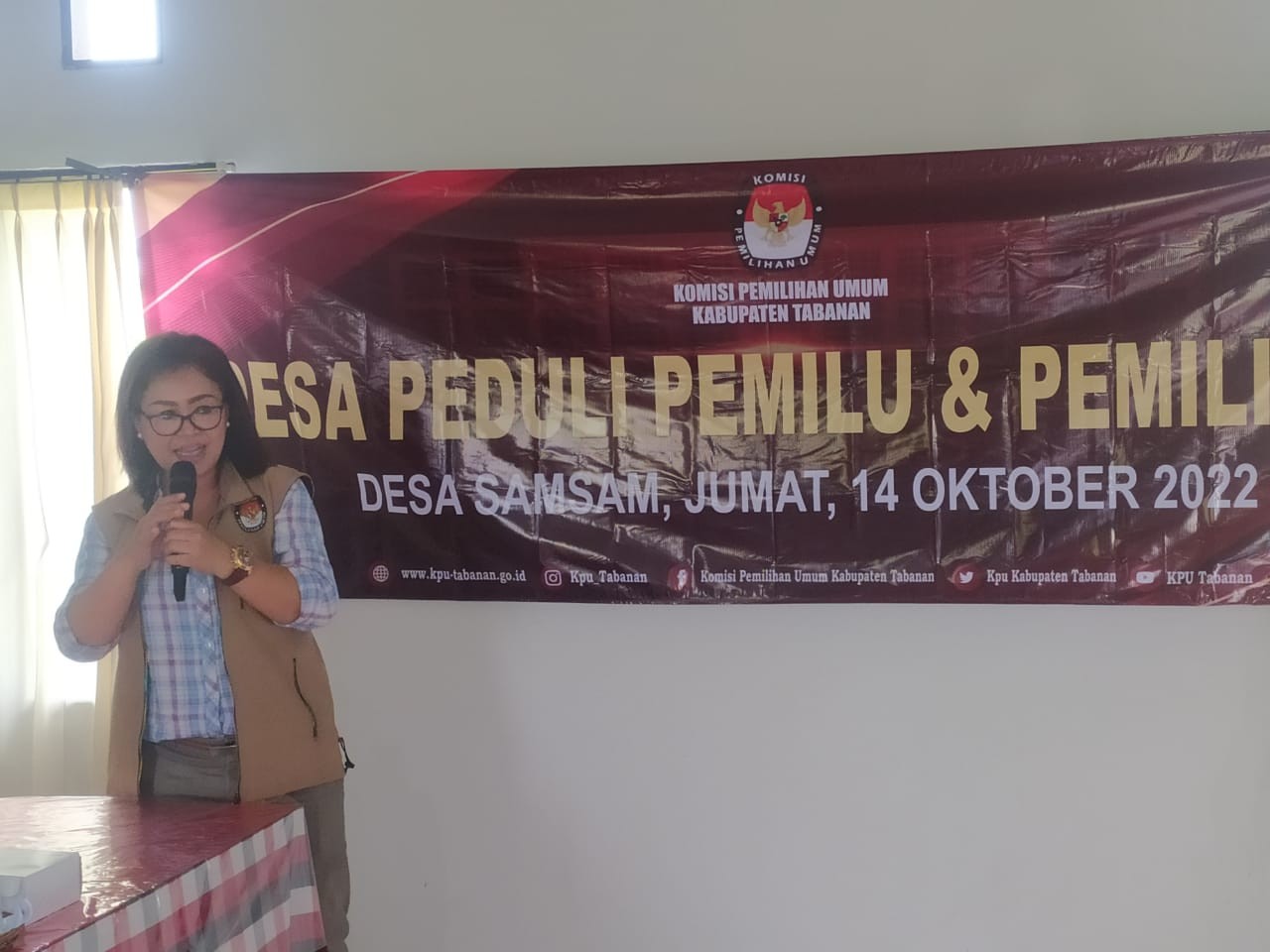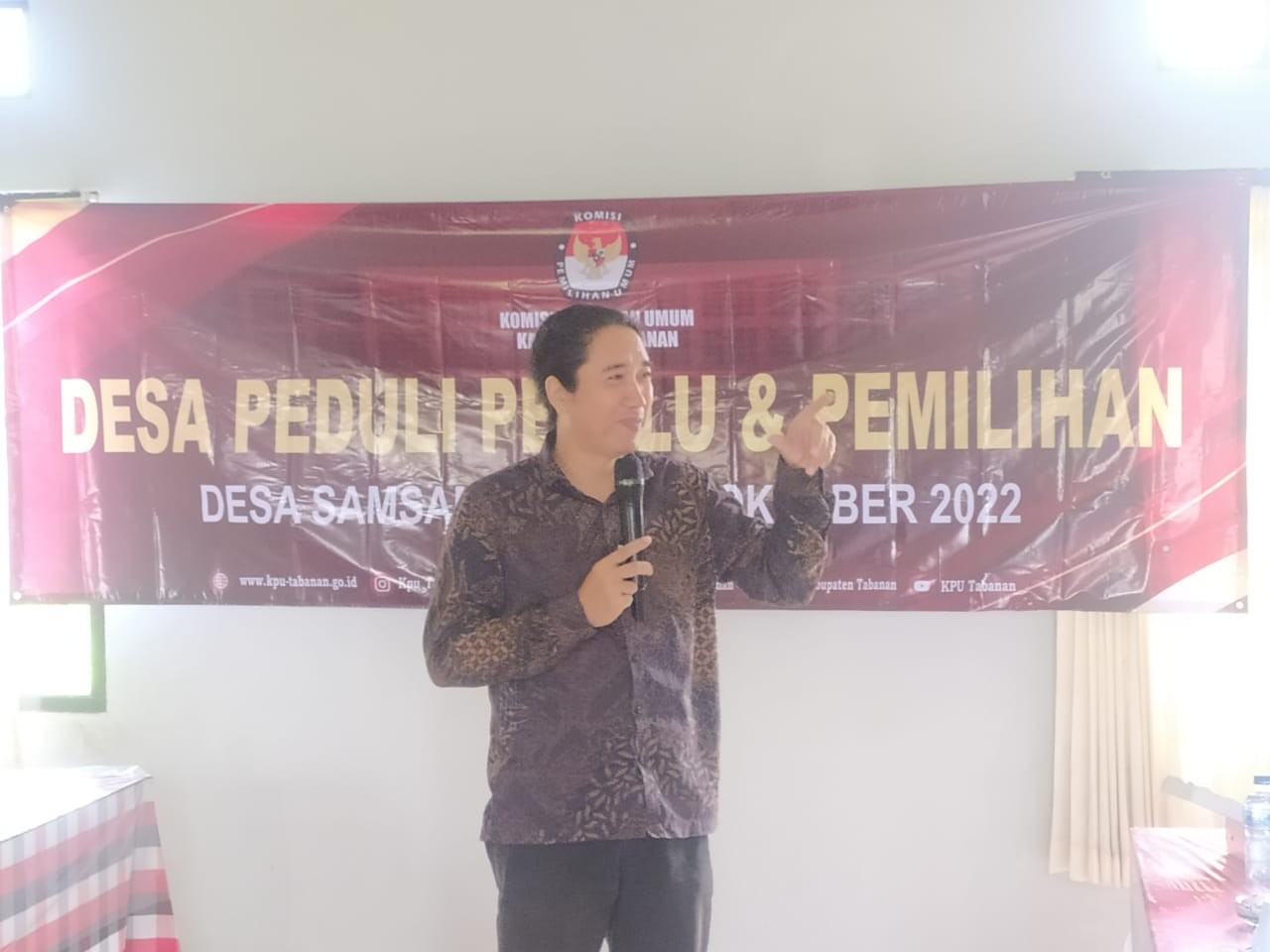 KPU Tabanan, Dangin Carik – Memasuki hari ketiga kegiatan sosialisasi melalui pendidikan Pemilih Desa Peduli Pemilu dan Pemilihan (DP3) dalam rangka Pemilu Serentak tahun 2024, KPU Kabupaten Tabanan mendatangi Desa Samsam, Kecamatan Kerambitan. Acara dilangsungkan sekitar pukul 09.00 Wita bertempat di ruang rapat Kantor Perbekel Desa Samsam, Jumat (14/10/2022).