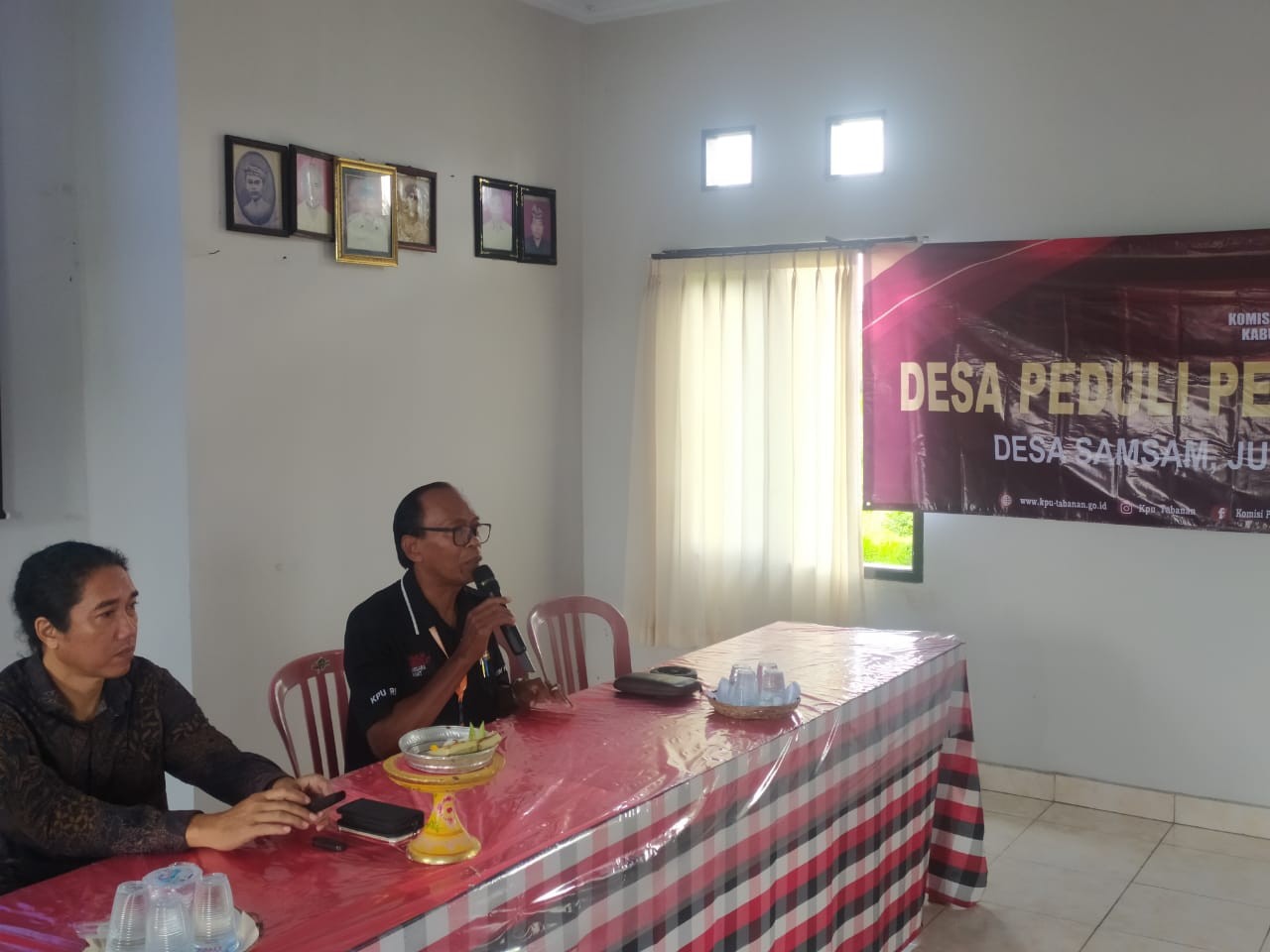Hadir dalam kesempatan itu yakni PLh. Ketua KPU Tabanan, I Wayan Sutama dan Anggota KPU Tabanan Ketua Divisi Sosialisasi, Pendidikan Pemilih, Parmas dan SDM, Ni Putu Suaryani. Selain itu hadir Perbekel Desa Samsam, Dewa Made Sukma Medya dan Bhabinkamtibmas Desa Samsam serta para Kader Demokrasi Desa Samsam sebanyak 25 (dua puluh lima) Orang.
