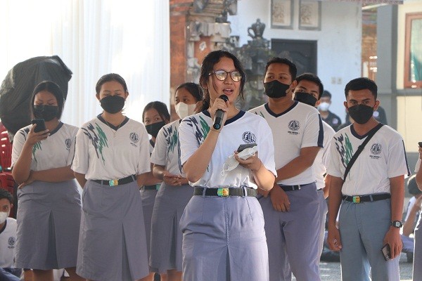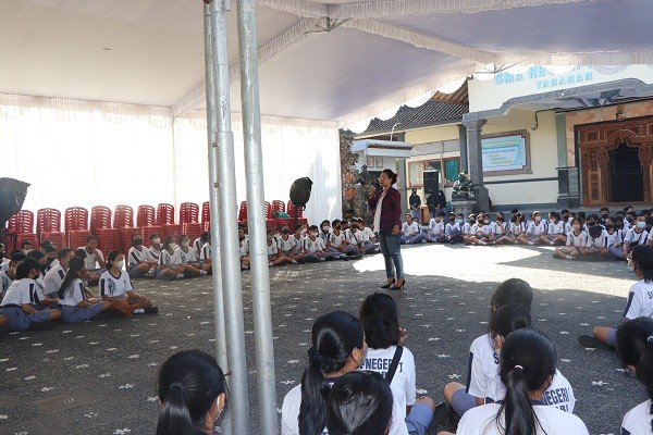 KPU Tabanan, Dangin Carik – Komisioner KPU Kabupaten Tabanan Ketua Divisi Sosialisasi, Pendidikan Pemilih, Parmas dan SDM, Ni Putu Suaryani memenuhi undangan sebagai Narasumber di Aula SMA Negeri 1 Kediri, Selasa (24/05/2022).