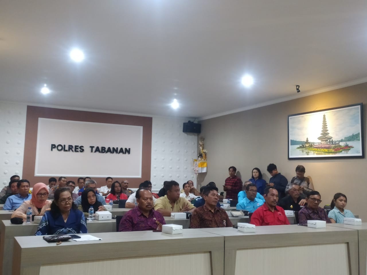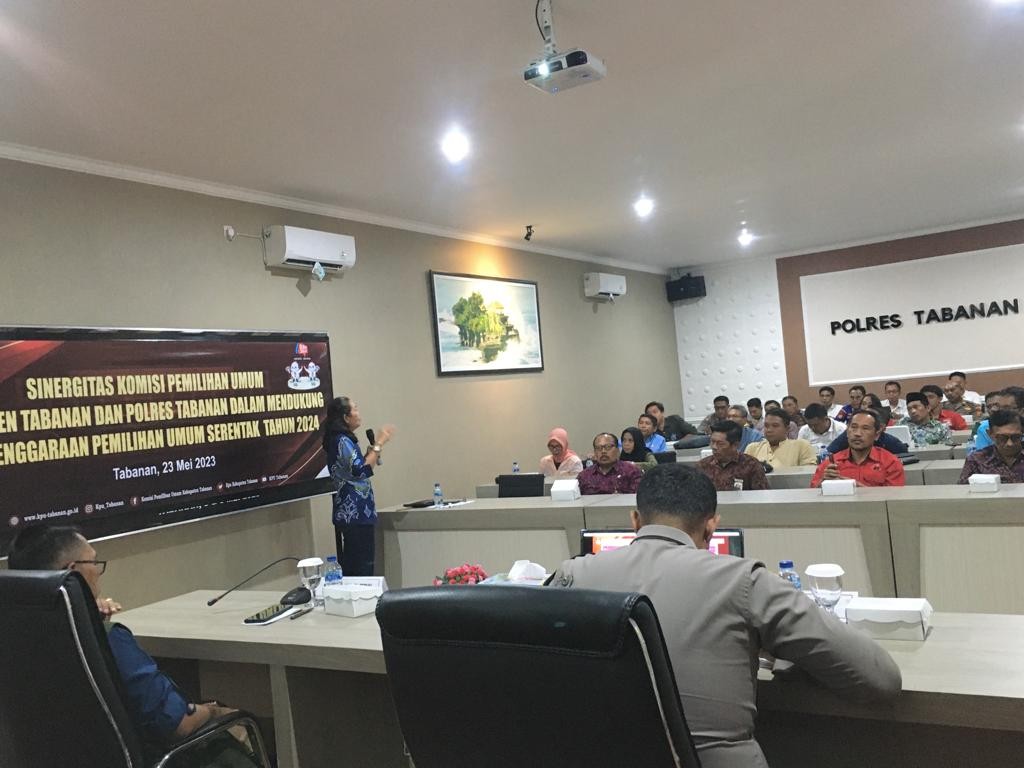 Kegiatan dimulai sekitar pukul 09.30 Wita, bertempat di ruang Vircon Sarja Arya Racana Polres Tabanan, Jalan Pahlawan Nomor 12, Delod Peken – Tabanan, Selasa (23/05/2023). Hadir dalam acara yakni Ketua KPU Tabanan, I Gede Putu Weda Subawa dan Anggota KPU Tabanan Ketua Divisi Teknis Penyelenggaraan, Luh Made Sunadi serta Ketua Divisi Sosialisasi, Pendidikan Pemilih, Parmas dan SDM, Ni Putu Suaryani. Hadir pula Kapolres Tabanan, AKBP Leo Dedy Defretes,S.H.,S.I.K.,M.H.