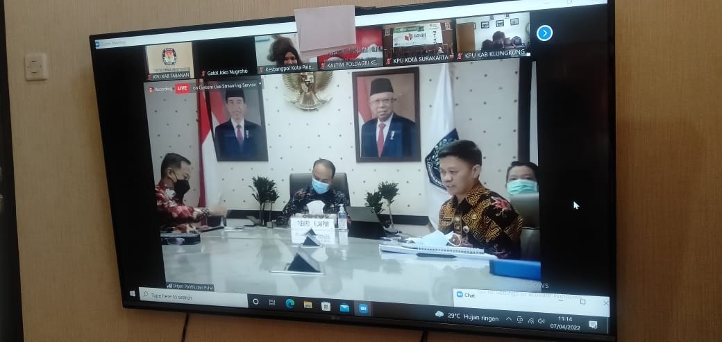 KPU Tabanan, Dangin Carik – Komisioner KPU Kabupaten Tabanan yakni Ketua Divisi Teknis Penyelenggaraan, Luh Made Sunadi dan Ketua Divisi Hukum dan Pengawasan, I Wayan Sutama serta Ketua Divisi Perencanaan, Data dan Informasi, I Ketut Sugina menghadiri Zoom Meeting sekitar pukul 11.00 Wita, bertempat di ruang rapat Kantor KPU Tabanan, Kamis (07/04/2022).