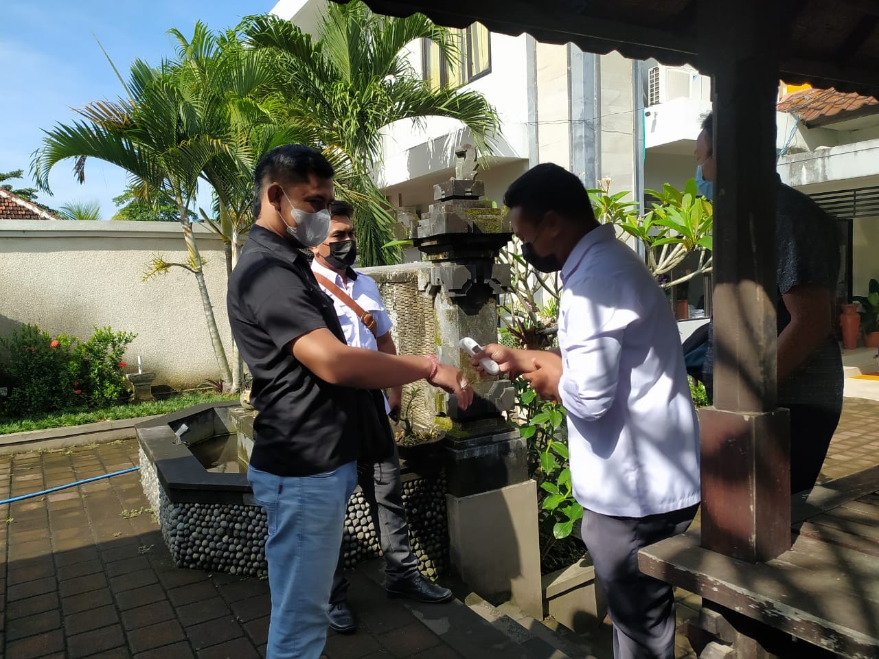 Kegiatan yang dilaksanakan dalam situasi Virus Corona atau Covid-19 dengan tetap memperhatikan protokol kesehatan seperti menjaga jarak fisik atau physical distancing, menggunakan masker, menggunakan cairan pembersih tangan atau hand zanitizer serta mencuci tangan dengan sabun dan air mengalir. (Humas KPU Tabanan).