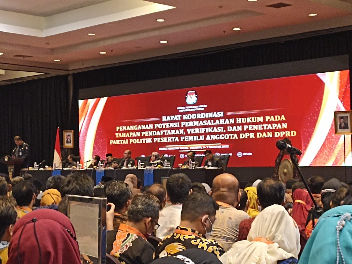 Dikutip dari Surat undangan KPU RI bahwa Rakor dimaksud dilaksanakan dalam rangka penanganan potensi permasalahan hukum pada Tahapan Pendaftaran, Verifikasi dan Penetapan Partai Politik Peserta Pemilu Anggota DPR dan DPRD.