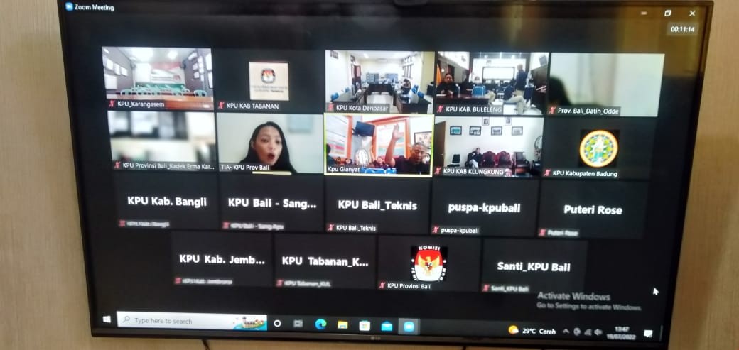KPU Tabanan, Dangin Carik – Sesuai undangan dari Plh. Sekretaris KPU Provinsi Bali maka Jajaran Sekretariat KPU Kabupaten Tabanan mengikuti Zoom Meeting sosialisasi pengelolaan dan pemutakhiran mandiri aplikasi Sistem Informasi Manajemen Kegegawaian (SIMPEG) dari Ruang Rapat KPU Tabanan, Selasa (19/07/2022).