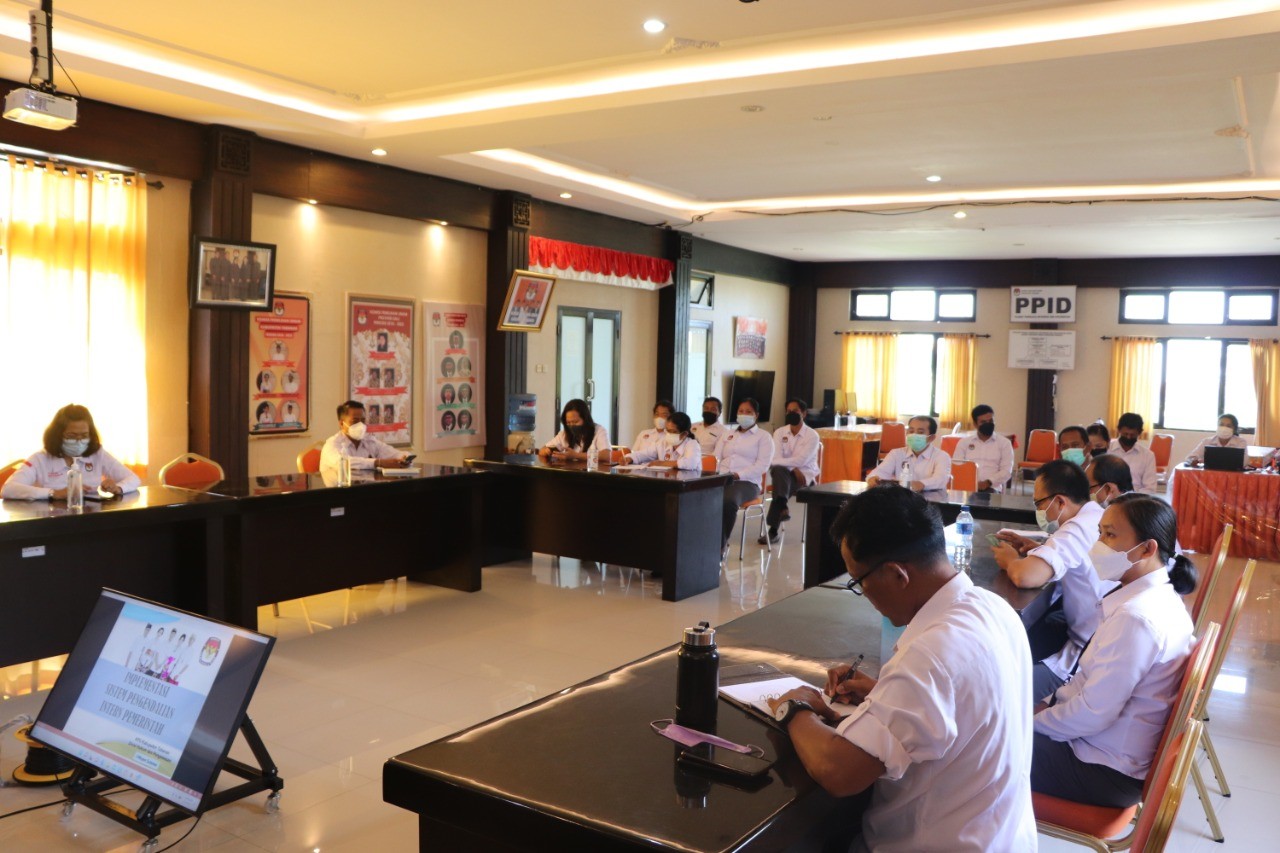 KPU Tabanan, Dangin Carik – Ketua Komisi Pemilihan Umum (KPU) Kabupaten Tabanan, I Gede Putu Weda Subawa mengumpulkan Jajarannya dalam rangka sosialisasi implementasi Sistem Pengendalian Intern Pemerintah (SPIP) yang dilangsungkan di ruang rapat Kantor KPU Tabanan, pukul 10.00 Wita, Senin (21/03/2022).