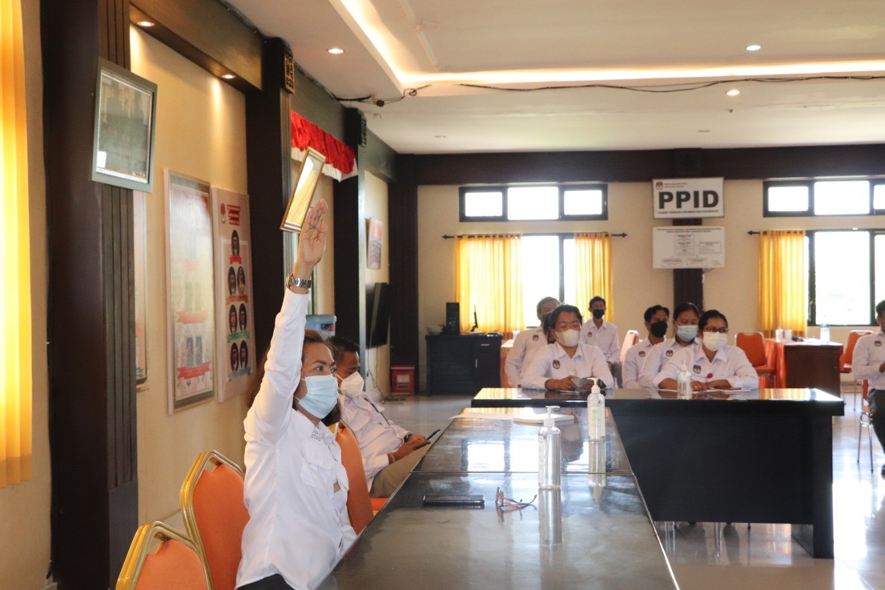 Acara itu dipimpin Ketua KPU Tabanan dan dihadiri Anggota KPU Tabanan, para Kasubbag dan Jajaran Sekretariat KPU Tabanan. Sebagai Narasumber yakni Anggota KPU Tabanan Ketua Divisi Hukum dan Pengawasan, I Wayan Sutama.
