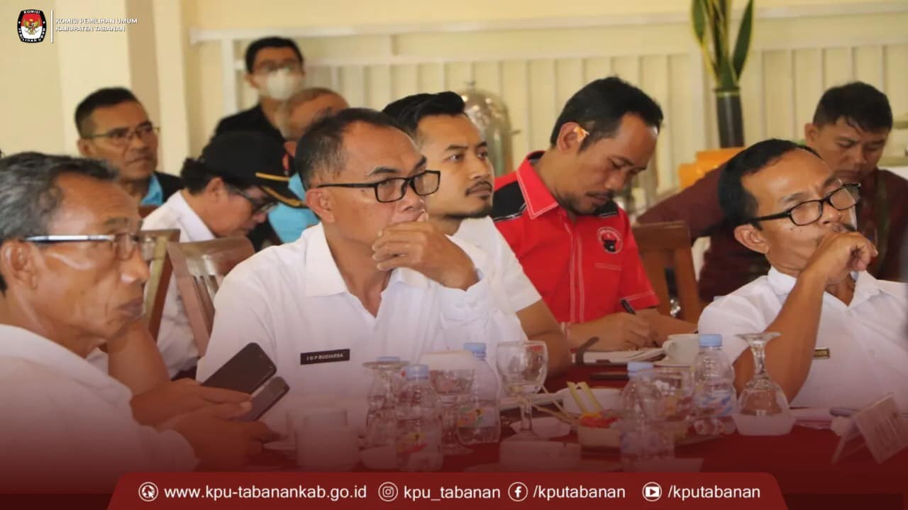 Disamping itu KPU Tabanan mengundang Partai Politik seperti Ketua PPP, Nasdem, PKB, PKS, Golkar, Gerindra, Demokrat, PDI Perjuangan, PAN, Perindo, PSI, Hanura, Garuda, PBB, PKN, Gelora dan Partai Ummat.