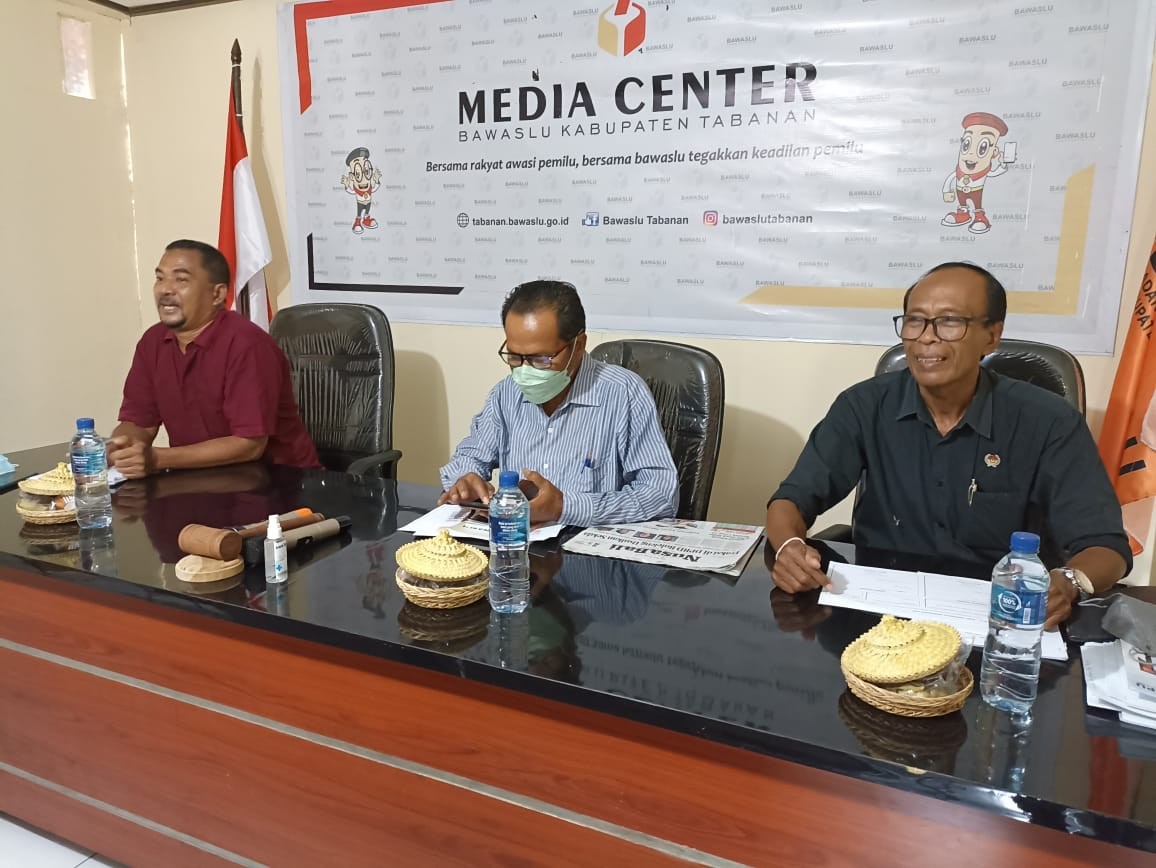 KPU Tabanan, Dangin Carik – Anggota KPU Kabupaten Tabanan Ketua Divisi Hukum dan Pengawasan, I Wayan Sutama dan Kasubbag Hukum dan Sumber Daya Manusia pada Sekretariat KPU Tabanan, I Made Suartika, menghadiri secara daring acara pembahasan persiapan pelaksanaan program dan kegiatan hukum di lingkungan Komisi Pemilihan Umum (KPU) Provinsi Bali dan KPU Kabupaten/Kota Se-Bali. Turut hadir Ketua KPU Tabanan, I Gede Putu Weda Subawa sekitar pukul 14.00 Wita, bertempat di ruang rapat KPU Tabanan, Jumat (18/03/2022). Zoom Meeting yang diadakan KPU Bali ini dihadiri Komisioner KPU Bali Ketua Divisi Hukum dan pengawasan, Anak Agung Gede Raka Nakula dan Sekretaris KPU Bali, I Made Oka Purnama serta Pejabat lainnya di lingkungan Sekretariat KPU Bali serta perwakilan KPU Kabupaten/Kota Se-Bali. “Untuk saat ini, apa yang Bapak dan Ibu sampaikan ke pusat mohon disampaikan ke KPU Provinsi dulu,” ucap I Made Oka Purnama. Kepala Bagian (Kabag) Teknis Penyelenggaraan Pemilu, Partisipasi dan Hubungan Masyarakat, Hukum dan SDM Sekretariat KPU Bali, I Wayan Nopi Suryanto, menyampaikan beberapa arahannya terkait Sistem Pengendalian Intern Pemerintah (SPIP) dan Jaringan Dokumentasi dan Informasi Hukum (JDIH). Selain itu dikatakannya, “Kepada Pak Sekretaris di masing-masing KPU Kabupaten/Kota Se-Bali, Saya mohon bantuannya agar menyampaikan kepada PNS bahwa hari ini merupakan penginputan terakhir SKP tahun 2021, yaitu sampai pukul 22.00 Wita,” ucapnya. Kegiatan yang dilaksanakan dalam situasi Virus Corona atau Covid-19 dengan tetap memperhatikan protokol kesehatan seperti menjaga jarak fisik atau physical distancing, menggunakan masker, menggunakan cairan pembersih tangan atau hand zanitizer serta mencuci tangan dengan sabun dan air mengalir. (Humas KPU Tabanan).
