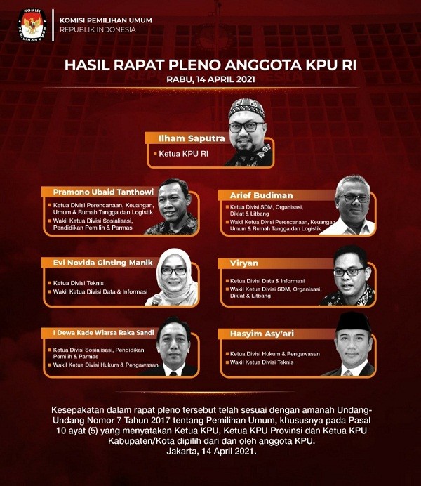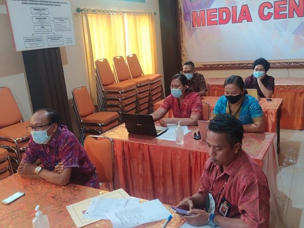 Komisioner KPU Kabupaten Tabanan yakni Ketua KPU Tabanan, I Gede Putu Weda Subawa, Anggota KPU Tabanan Ketua Divisi Perencanaan, Data dan Informasi, I Ketut Sugina mengikuti Pertemuan Dalam Jaringan (Daring) dimaksud melalui aplikasi zoom.Hadir pula Ketua Divisi Hukum dan Pengawasan, I Wayan Sutama dan Kasubbag Program dan Data, Putu Eviyanti Dewi Lestari serta Staf Sub Bagian Program dan Data Sekretariat KPU Tabanan, Pukul 10.00 Wita, bertempat di Ruang Rapat Kantor KPU Tabanan, Selasa (27/04/2021).