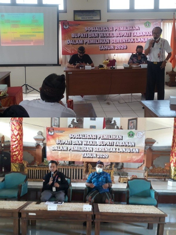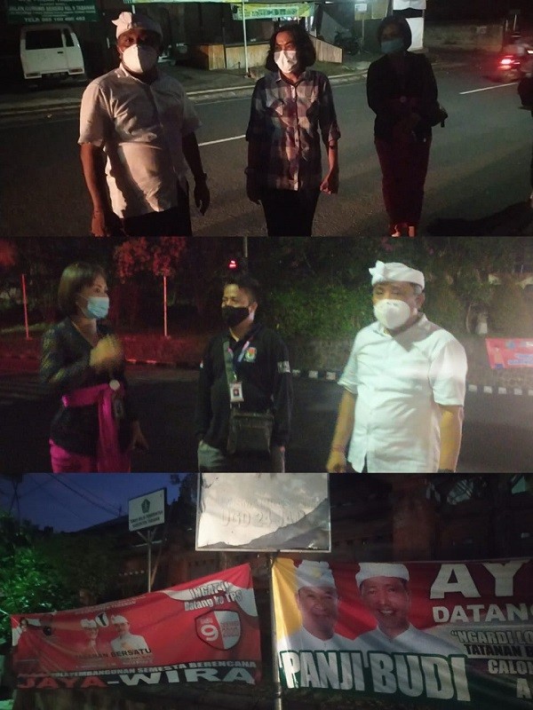 KPU Tabanan, Dangin Carik – Untuk memastikan pemasangan Alat Peraga Kampanye (APK) Pasangan Calon Bupati dan Wakil Bupati Tabanan telah sesuai dengan ketentuan yang berlaku, dalam rangka Pemilihan Serentak Lanjutan 2020. Ketua KPU Provinsi Bali, I Dewa Agung Gede Lidartawan, didampingi Staf Sekretariat KPU Bali, melaksanakan monitoring ke Kabupaten Tabanan. Dalam kegiatan itu hadir Komisioner KPU Tabanan Ketua Divisi Teknis Penyelenggaraan, Luh Made Sunadi, Ketua Divisi Perencanaan, Data dan Informasi, I Ketut Sugina dan Ketua Divisi Sosialisasi, Pendidikan Pemilih, Parmas dan SDM, Ni Putu Suaryani, Kamis, (12/11/2020). Tampak pula hadir Staf Sekretariat KPU Tabanan, Panitia Pemilihan Kecamatan (PPK) Tabanan dalam kegiatan tersebut. Adapun pemantauan APK dilaksanakan di Jalan Pahlawan dan Jalan Gajah Mada, yang terletak di Desa Delod Peken, Kecamatan Tabanan. “Tujuan monitoring APK yang dilaksanakan Ketua KPU Bali adalah untuk memastikan bahwa Pasangan Calon telah melaksanakan pemasangan APK di Zona yang sudah ditentukan dan memasang sesuai dengan Peraturan Perundang-undangan,” ungkap Luh Made Sunadi, ketika dimintai keterangan. Ditambahkan pula bahwa dari hasil monitoring tersebut diketahui terdapat beberapa APK yang telah dipasang oleh Paslon/LO Paslon, tidak sesuai ketentuan seperti mengikat pada tiyang listrik dan pohon. Kegiatan yang dilaksanakan dalam situasi pandemi Covid-19 atau Virus Corona, dengan tetap memperhatikan Protokol Kesehatan seperti physical distancing atau menjaga jarak fisik, menggunakan masker, pengecekan suhu/temperatur tubuh dengan thermogun, menggunakan hand zanitizer atau cairan pembersih tangan serta mencuci tangan dengan sabun dan air mengalir.