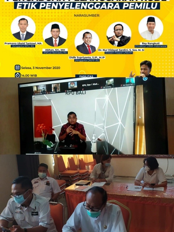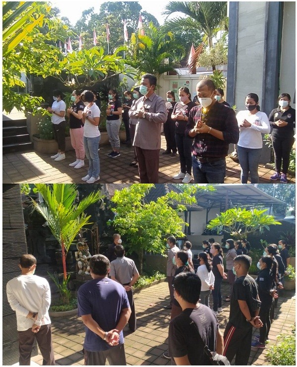 KPU Tabanan, Dangin Carik – Untuk memastikan pelaksanaan tugas telah berjalan sesuai tahapan dalam rangka Pemilihan Bupati dan Wakil Bupati Tabanan dan untuk memberikan semangat kepada Jajaran KPU Kabupaten Tabanan karena padatnya kegiatan menjelang Pilkada Serentak, Rabu,9 Desember 2020. Maka Anggota KPU Provinsi Bali Divisi Sosialisasi, Pendidikan Pemilih, Parmas dan SDM, I Gede John Darmawan, melaksanakan kunjungan ke KPU Tabanan pada Selasa Pagi, 03/11/2020. Pada kesempatan itu, Pak John panggilan akrabnya menyempatkan diri turut serta melaksanakan Apel Pagi rutin, dirangkai dengan Persembahyangan bersama di halaman Kantor KPU Tabanan. Terlihat hadir dalam acara tersebut, seluruh Komisioner dan Pegawai Sekretariat KPU Tabanan. “Jaga imunitas, karena kegiatan Kita semakin meningkat dan selalu pakai masker, istirahat yang cukup serta selalu jaga jarak,” pesannya disela-sela memberikan pengarahan saat apel pagi. “Pahamilah tubuhmu, karena Kita sendiri yang tahu kondisi tubuh Kita,”ucapnya. Beliau juga mengingatkan supaya rutin menyemprotkan disinfektan pada areal Kantor KPU Tabanan dalam masa pandemi Covid-19 ini. Di akhir sambutannya beliau mengatakan, “karena hari pencoblosan sudah semakin dekat, semoga Kita selalu dalam keadaan sehat, dan tetap jaga semangat.” Kegiatan yang dilaksanakan dalam situasi pandemi Covid-19 atau Virus Corona, dengan tetap memperhatikan Protokol Kesehatan seperti physical distancing atau menjaga jarak fisik, menggunakan masker, pengecekan suhu/temperatur tubuh dengan thermogun, menggunakan hand zanitizer atau cairan pembersih tangan serta mencuci tangan dengan sabun dan air mengalir.