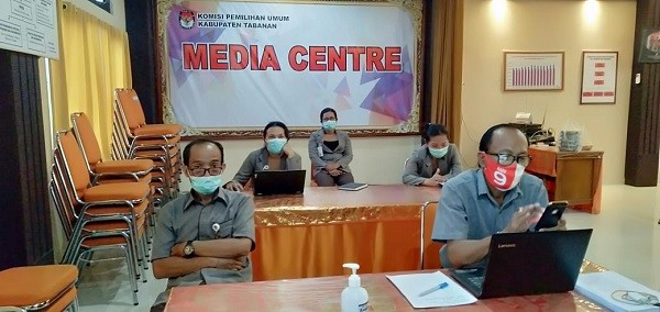 KPU Tabanan, Dangin Carik – Dalam rangka Pemilihan Serentak Lanjutan 2020 di tengah pandemi Covid-19 serta sebagai upaya penanganan perkara perselisihan hasil Pemilihan dalam Pemilihan Serentak yang akan digelar pada 9 Desember 2020 mendatang. Berkaitan dengan itu, Komisi Pemilihan Umum (KPU) Kabupaten Tabanan mengikuti Bimbingin Teknis Hukum Acara Penanganan Perkara Perselisihan Hasil Pemilihan Gubernur, Bupati dan Wali Kota tahun 2020 bagi Komisi Pemilihan Umum yang dilaksanakan secara Daring oleh Mahkamah Konstitusi RI dari tanggal 6 s/d 8 Oktober 2020. Hadir dalam Rapat Online tersebut Anggota KPU Tabanan, Ketua Divisi Hukum dan Pengawasan, I Wayan Sutama, Kasubbag Hukum dan Pengawasan, I Made Suartika serta Staf Sub Bagian Hukum dan Pengawasan Sekretariat KPU Tabanan, Rabu, (07/10/2020), bertempat di Ruang Rapat KPU Tabanan. “Daring ini akan berlangsung selama 3 hari yakni dari tanggal 6 – 8 Oktober 2020. Pada Zoom Meeting kemarin, mengisi quisioner terkait sidang perselisihan hasil Pemilihan, terdapat 15 pertanyaan. Ada 4 model quisioner yang harus diisi Peserta, ungkap I Wayan Sutama. Beliau juga menambahkan bahwa Daring Meeting dibuka Ketua MK dan acara kemarin berlangsung sampai pukul 22.00 Wita, dengan 4 Narasumber. “Yang mengadakan Bimtek adalah Mahkamah Konstitusi dan diikuti oleh seluruh KPU Divisi Hukum yang melaksanakan Pilkada, baik KPU Provinsi maupun KPU Kabupaten/Kota di Indonesia,” ucapnya ketika dimintai keterangan. Sebagai informasi, kemarin tepatnya pada hari Selasa, 6 Oktober 2020, Jajaran Divisi Huku dan Pengawasan juga telah mengikuti Bimtek secara Daring terkait Penanganan Perkara Perselisihan Hasil Pemilihan dari Ruang Rapat Kantor KPU Tabanan. Kegiatan yang dilaksanakan dalam situasi pandemi Covid-19 atau Virus Corona, dengan tetap memperhatikan Protokol Kesehatan seperti physical distancing atau menjaga jarak fisik, menggunakan masker, pengecekan suhu/temperatur tubuh dengan thermogun serta menggunakan hand zanitizer atau cairan pembersih tangan serta mencuci tangan dengan sabun dan air mengalir.